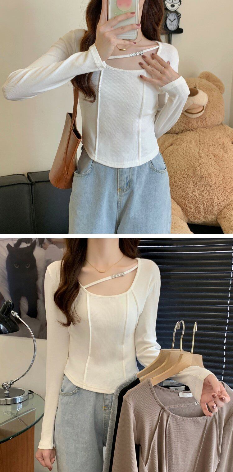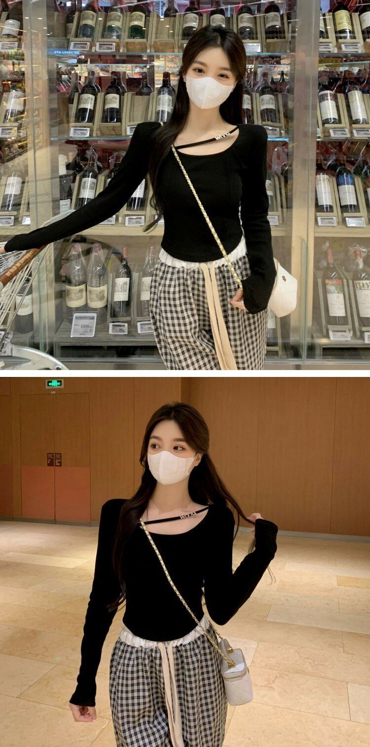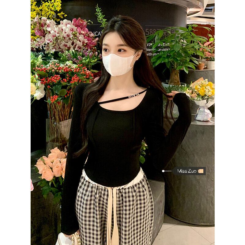 ショートトップス オータムウィンターシャツブラック長袖スリーブ ロング 大人ガーリー スウィート キュート カジュアル 秋物 冬物 Tシャツ s57611882119559