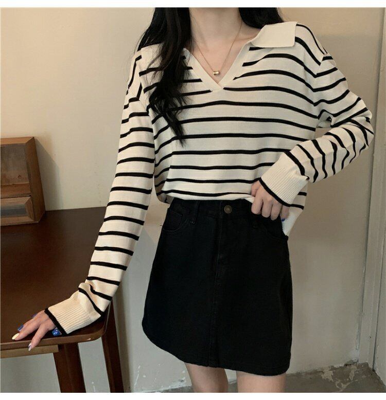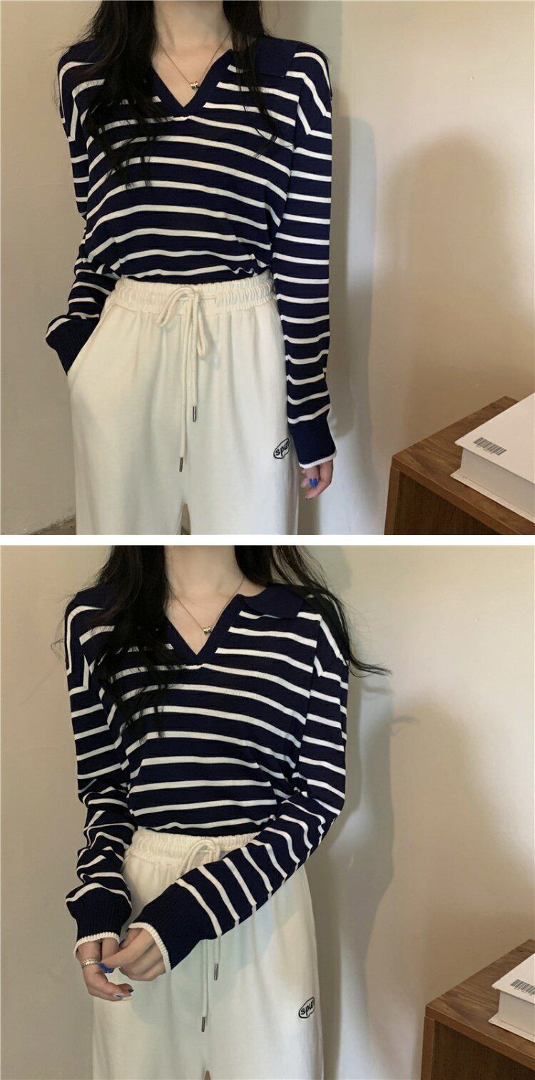 ストライプTシャツ オータムスタイルショートニットトップス ロング 秋物 s576123609400738