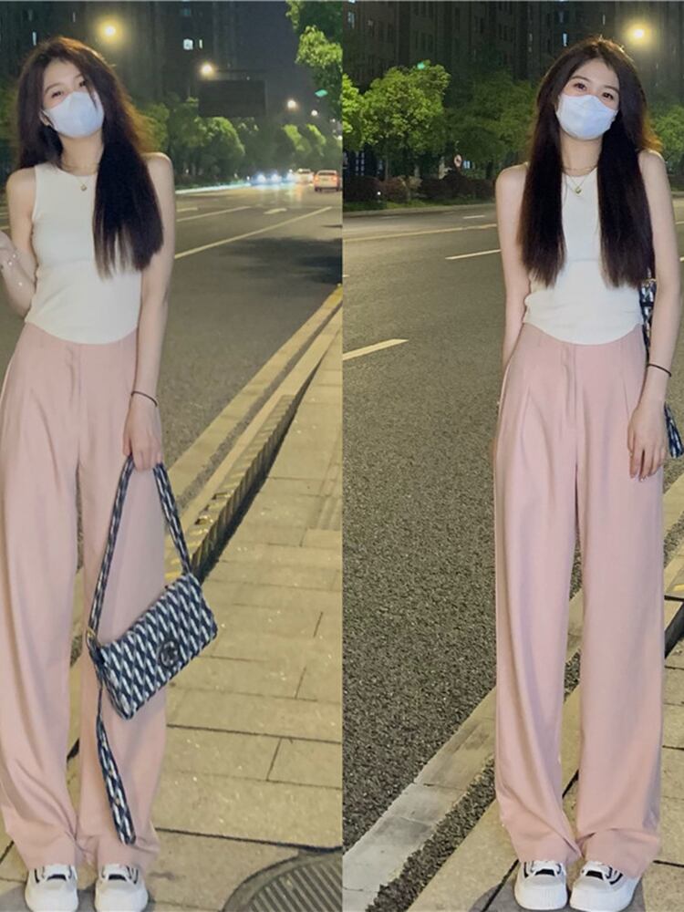 パンツ サマー薄手ハイウェストルーズカジュアル ピンク 夏物 s576123597524425