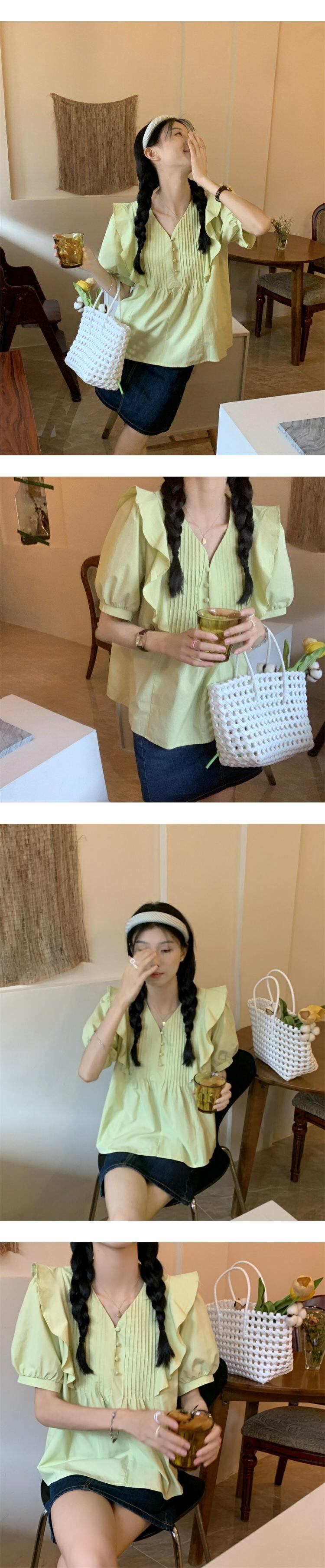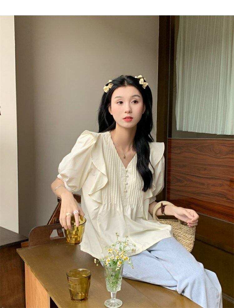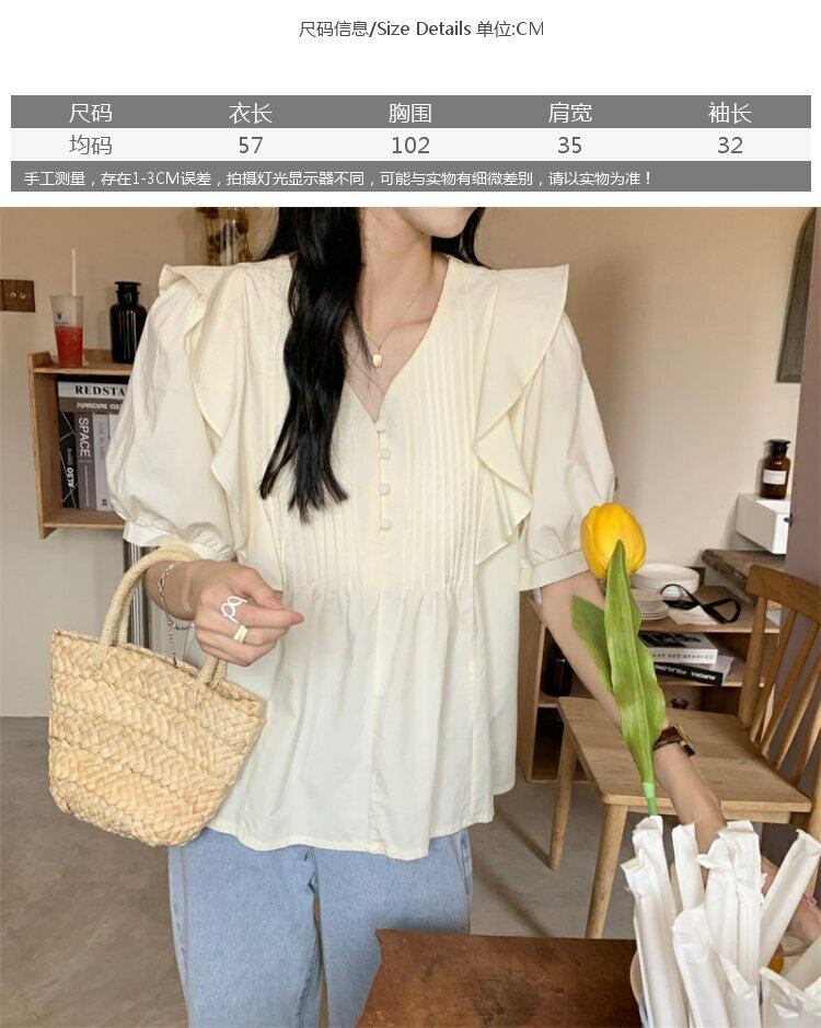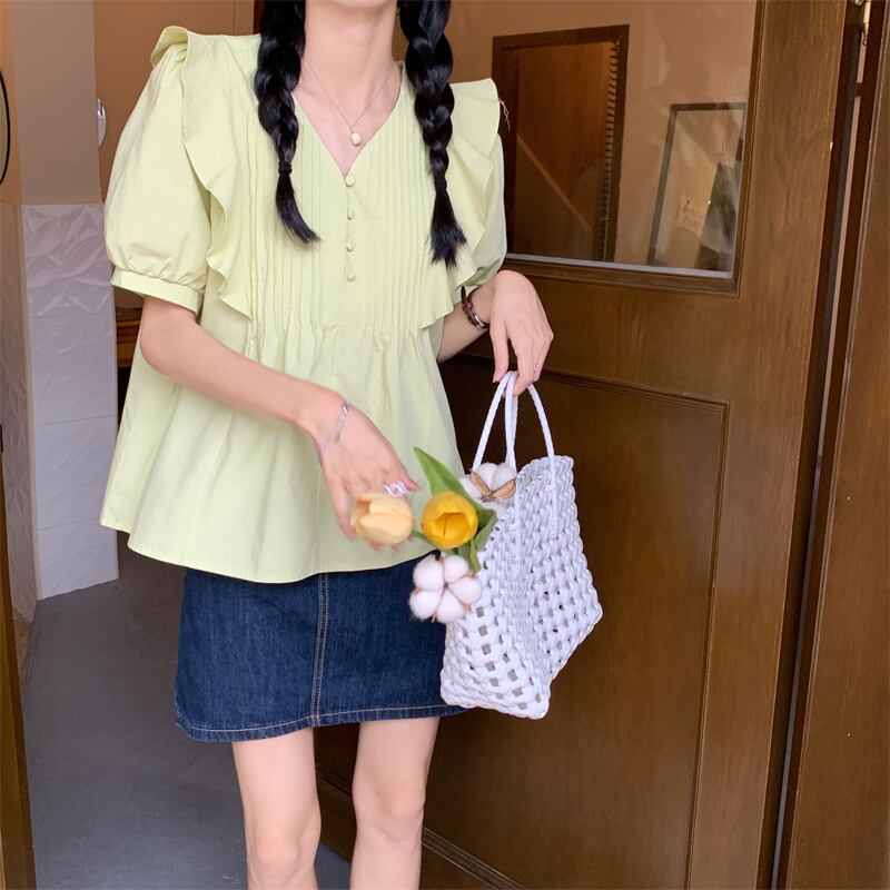Vネックスリーブシャツ サマートップス 大人ガーリー スウィート キュート カジュアル 夏物 s576137473268468