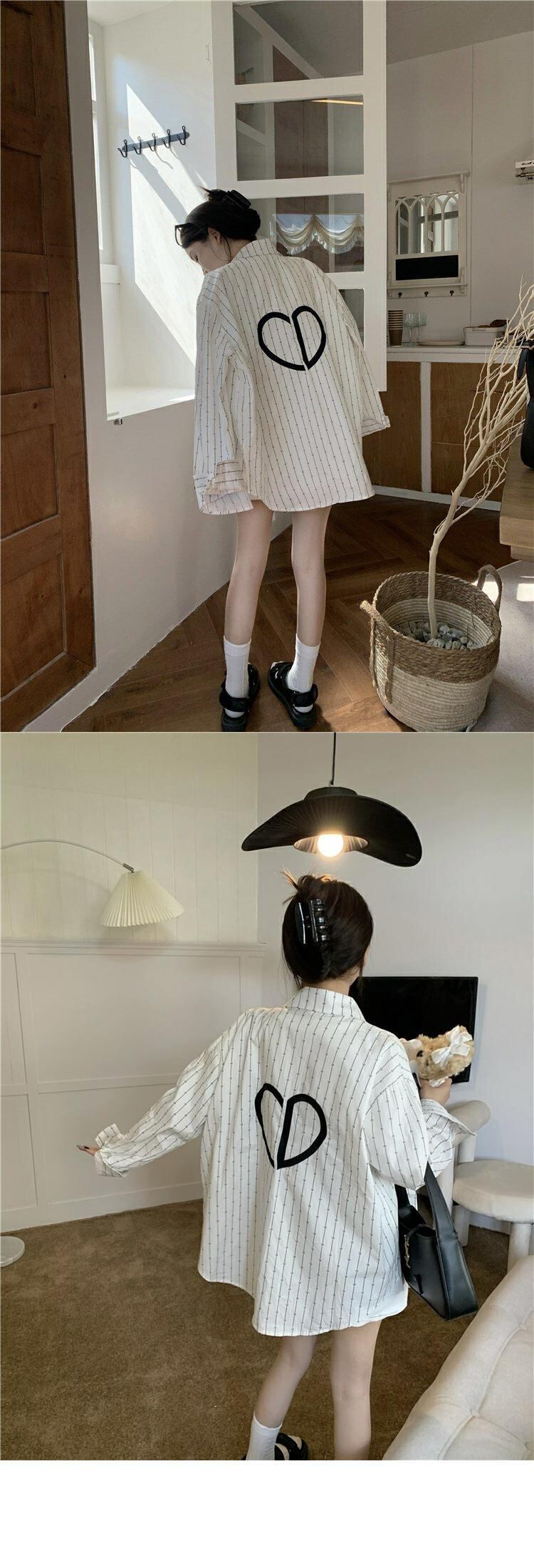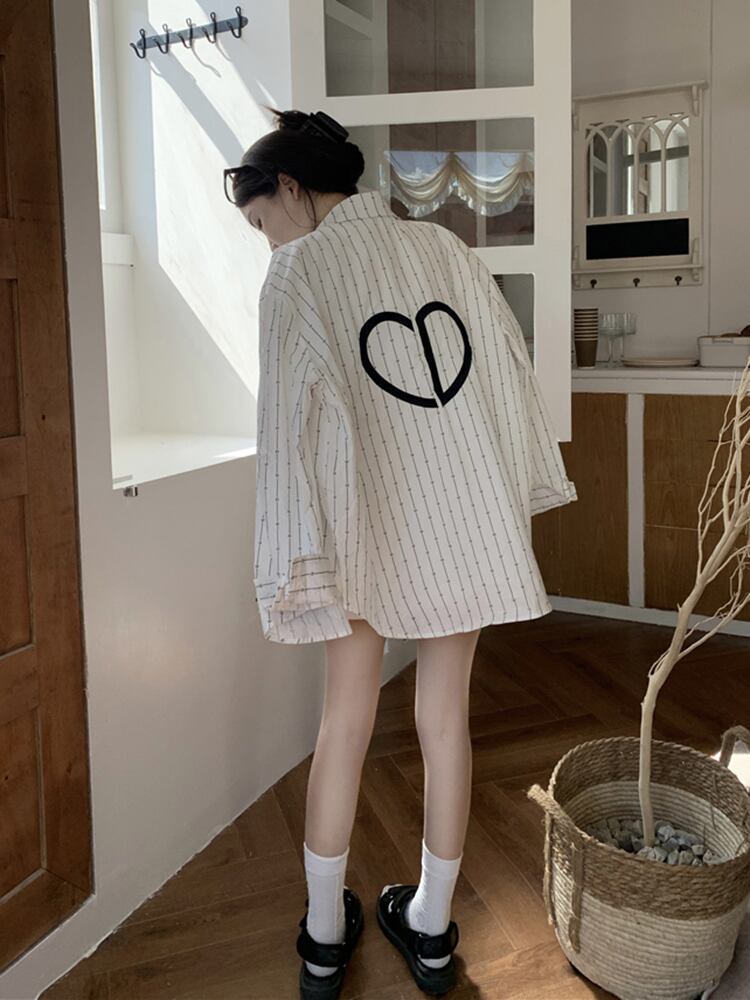 ストライプシャツ ジャケット オータムルーズスタイルトップス ロング 秋物 s576130807100954