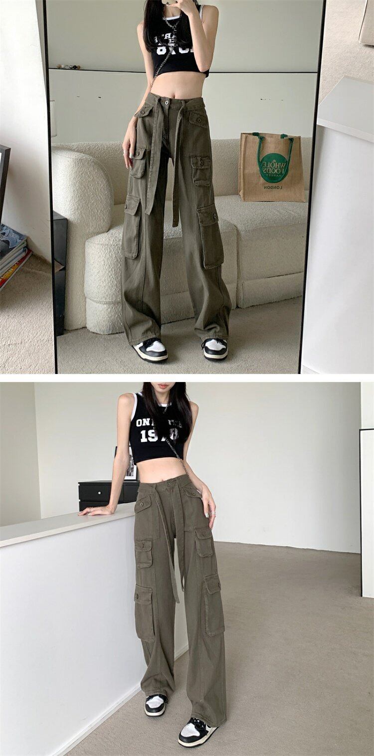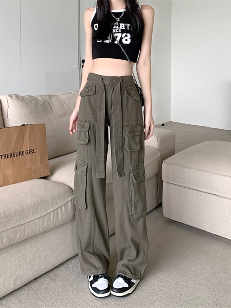 ジーンズ オータムハイウェストルーズロングパンツ ストリート 秋物 s576182962164905
