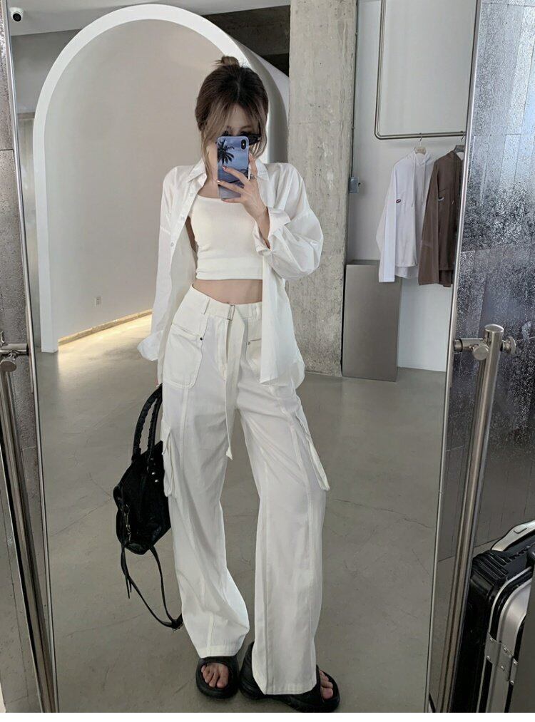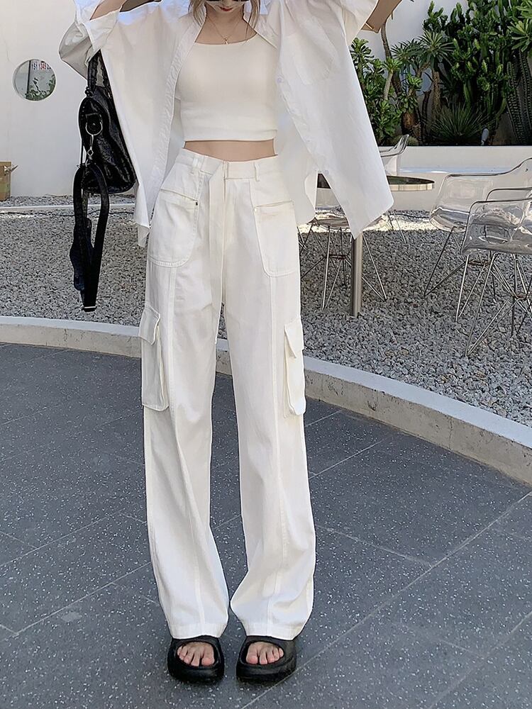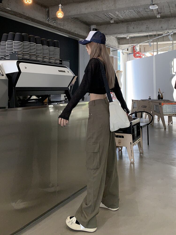 グリーンオーバーオール パンツ ルーズハイウェストウェスト薄手ワイドレッグ 大人ガーリー スウィート キュート カジュアル ワイドパンツ s576120528283941