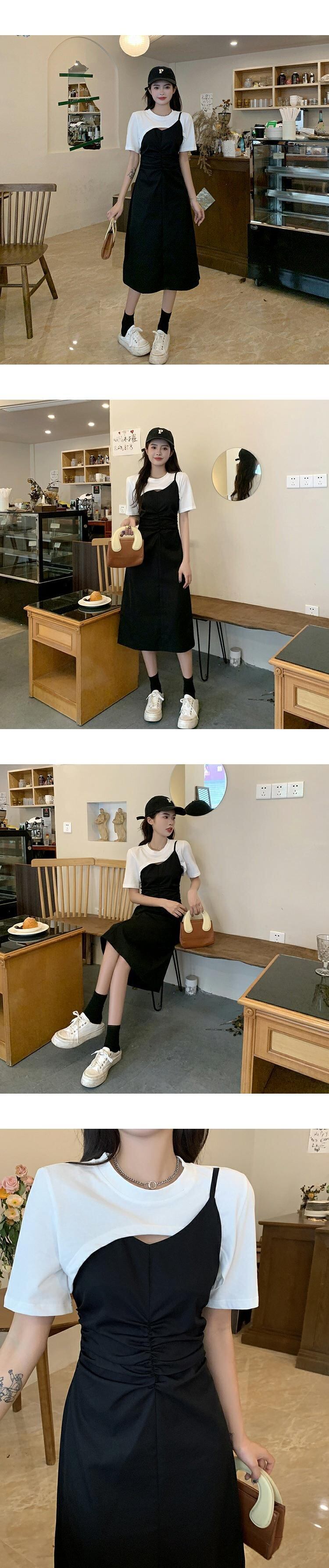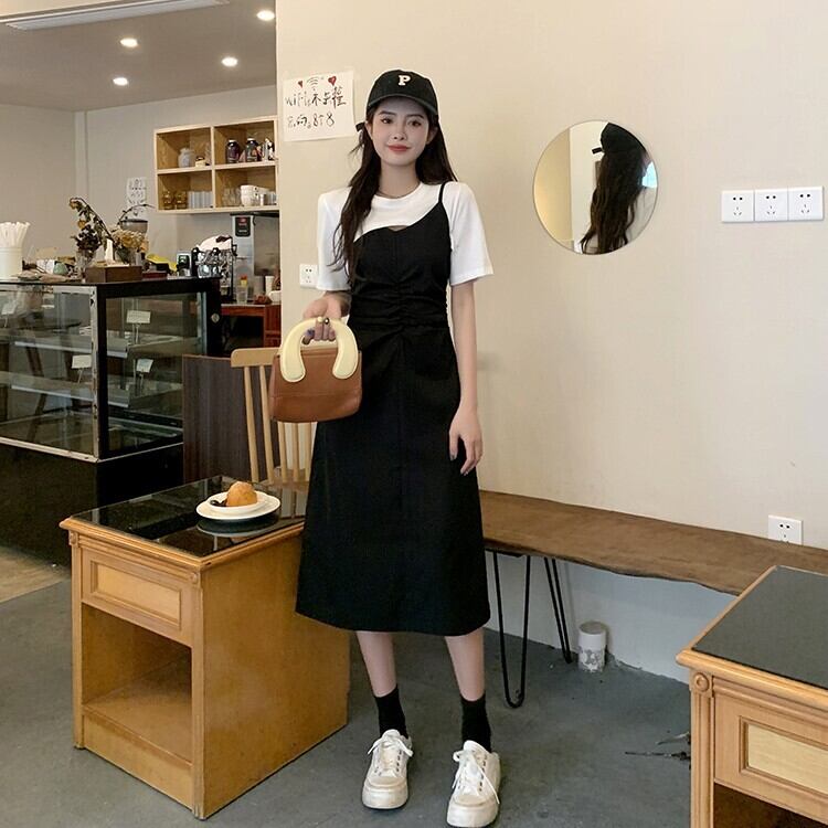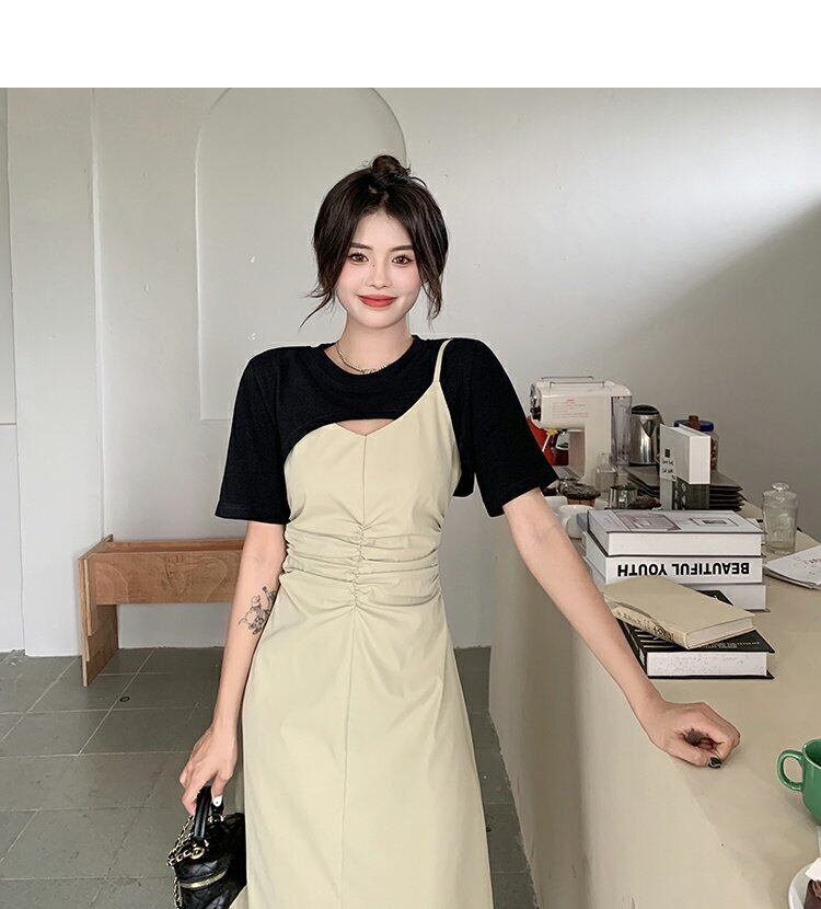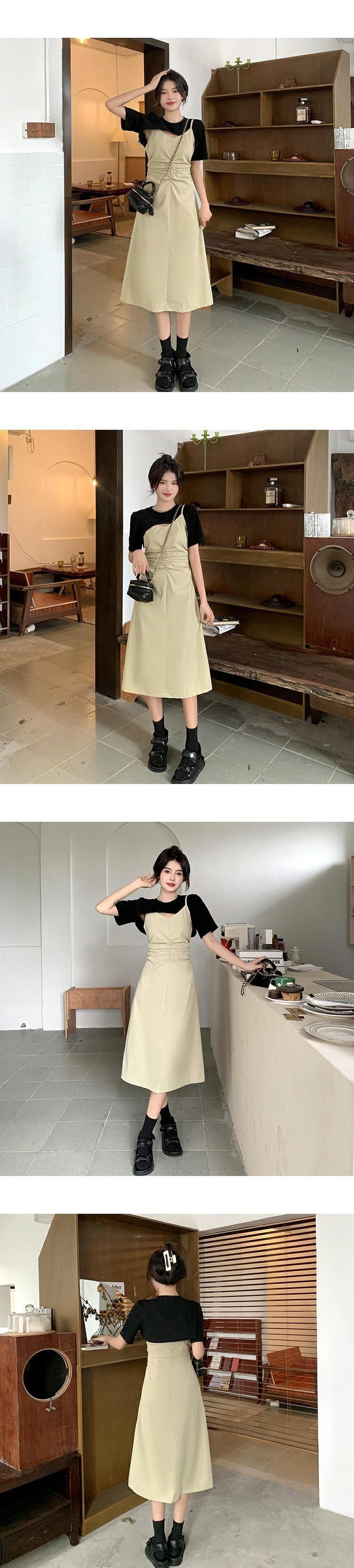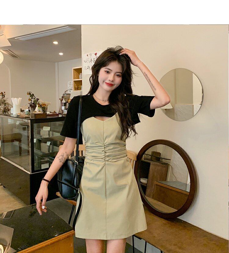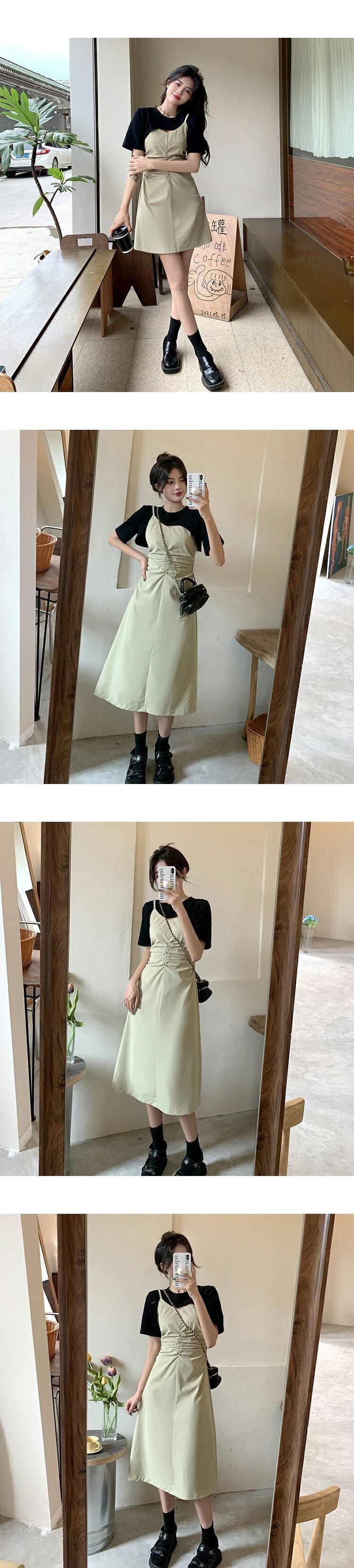ショートドレス サマーハイウェストAラインスカート 夏物 ステッチ s576199441444120