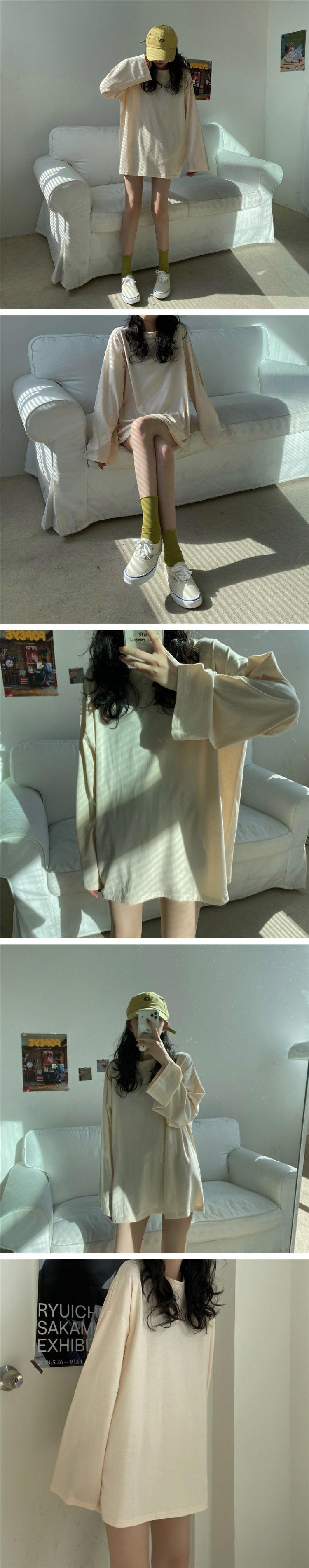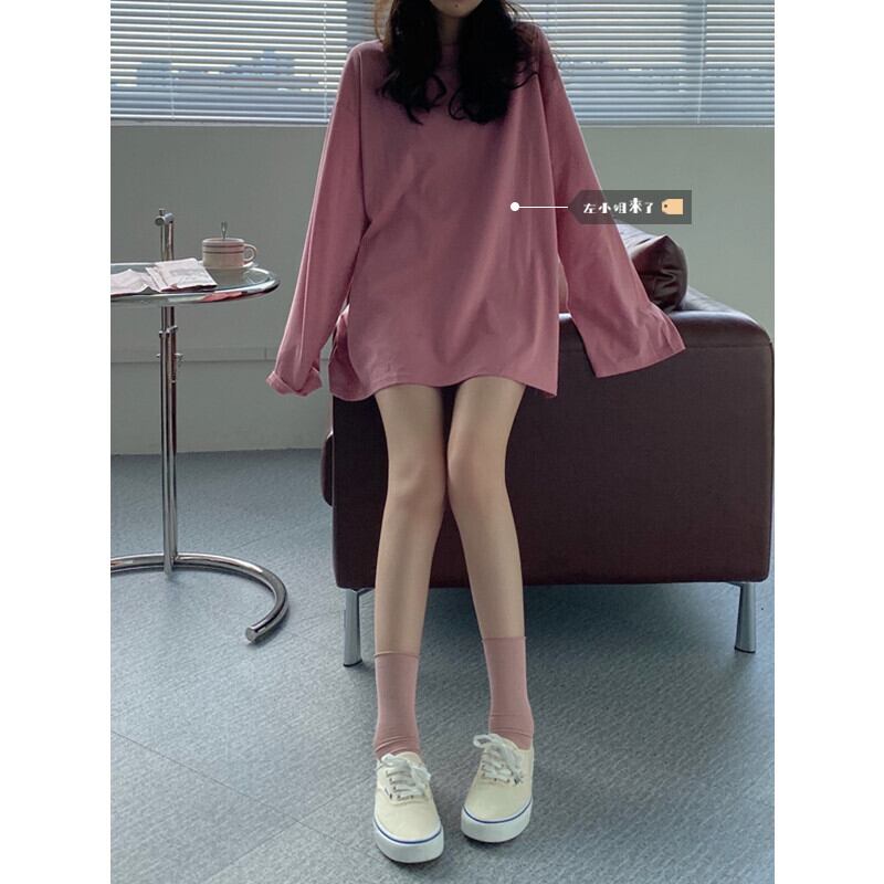 Tシャツ スプリングオータムルーズカジュアル ロング ピンク コットン 春物 秋物 s576189791414195