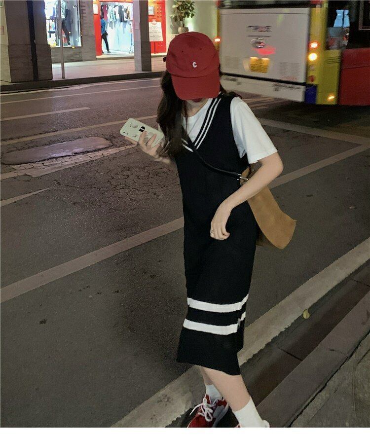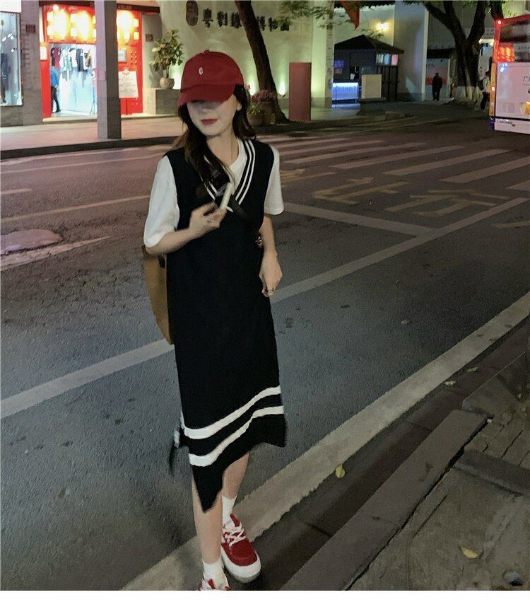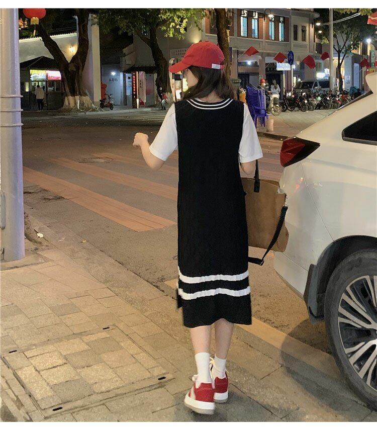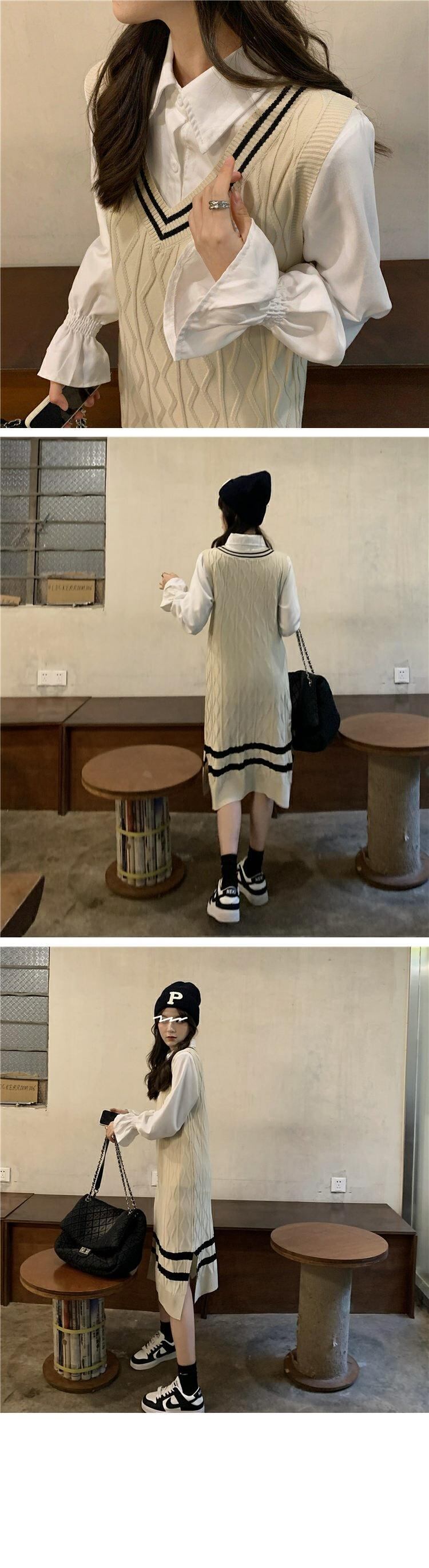 ブラックニットドレス スプリングオータムスタイルVネックロングスカート 大人ガーリー スウィート キュート カジュアル 春物 秋物 s576155861903074