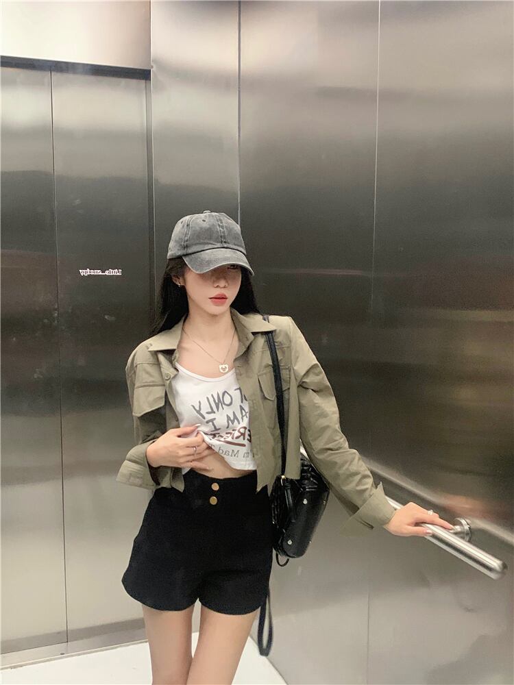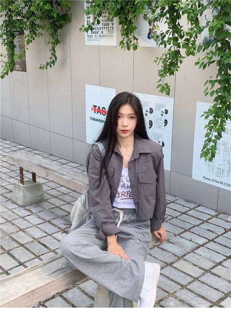 グレーシャツ ジャケット オータムショートトップス 秋物 s576150111315170