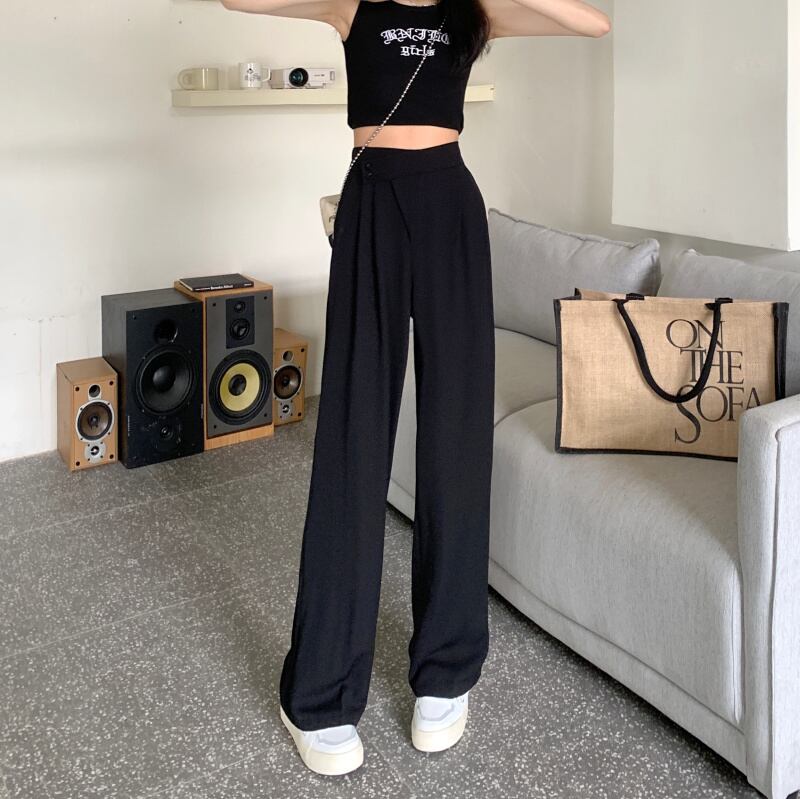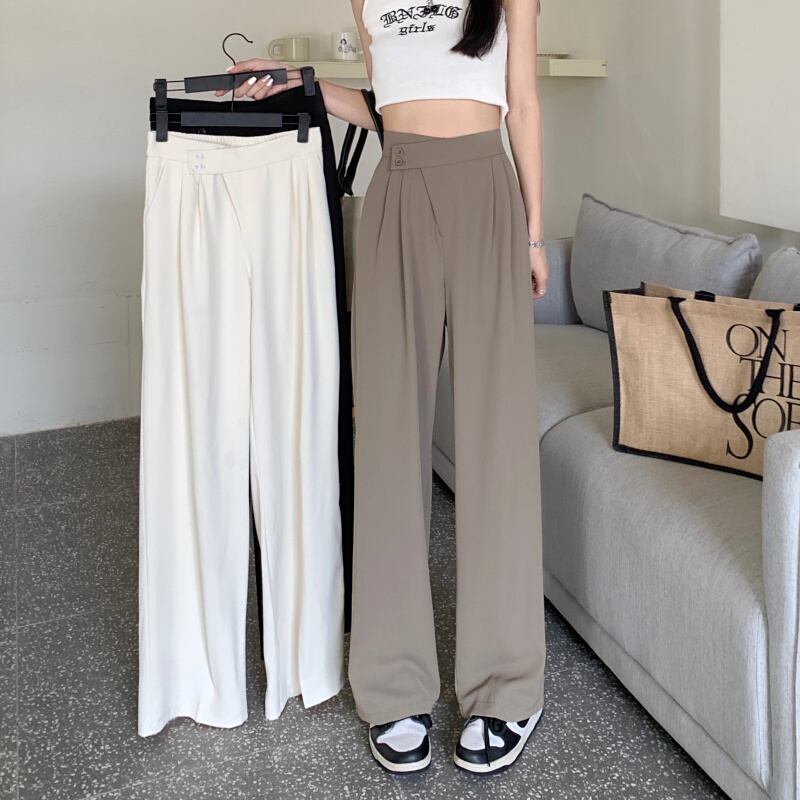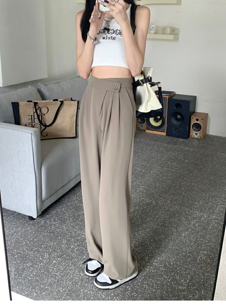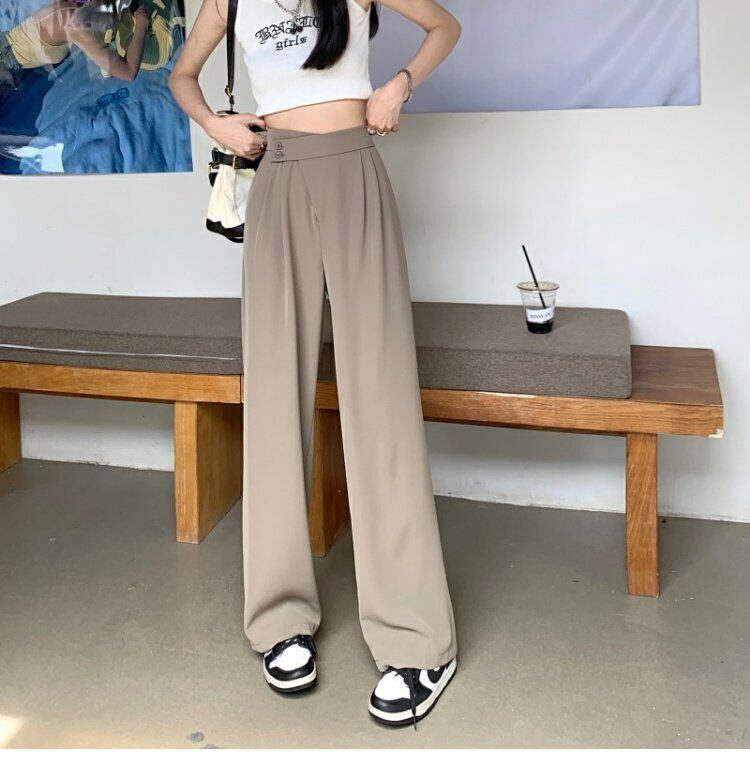 カーキパンツ サマー薄手ハイウェストウェストルーズカジュアルワイドレッグ 夏物 ワイドパンツ s576159760228906