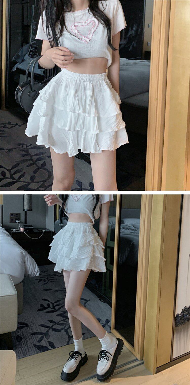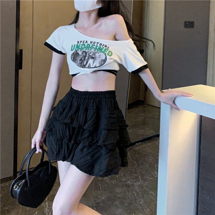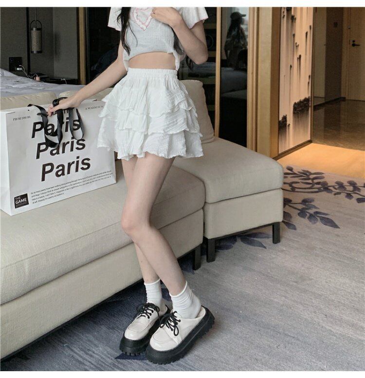 ホワイトスカート サマーハイウェストウェストストレッチ エラスティック 伸縮 夏物 パニエ ペチコート s576156085959446