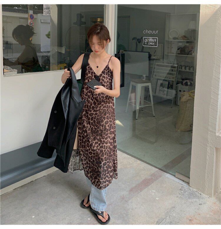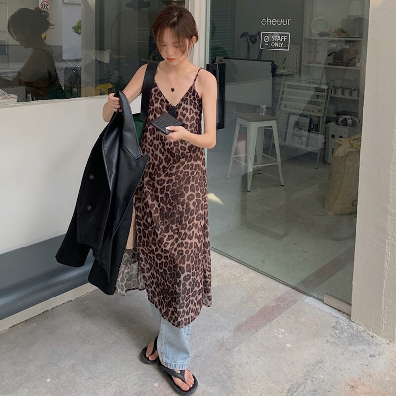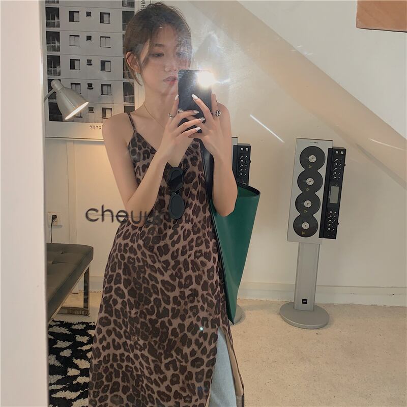 レオパードプリント柄ドレス オータムスリットロングスカート 秋物 s576175715530909