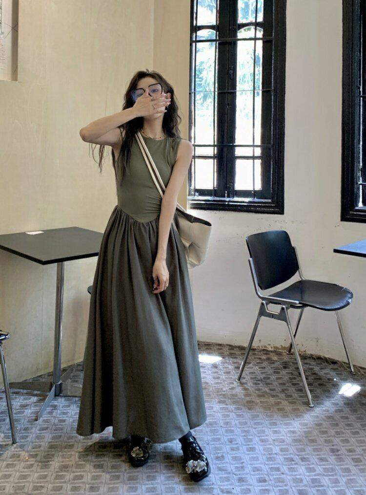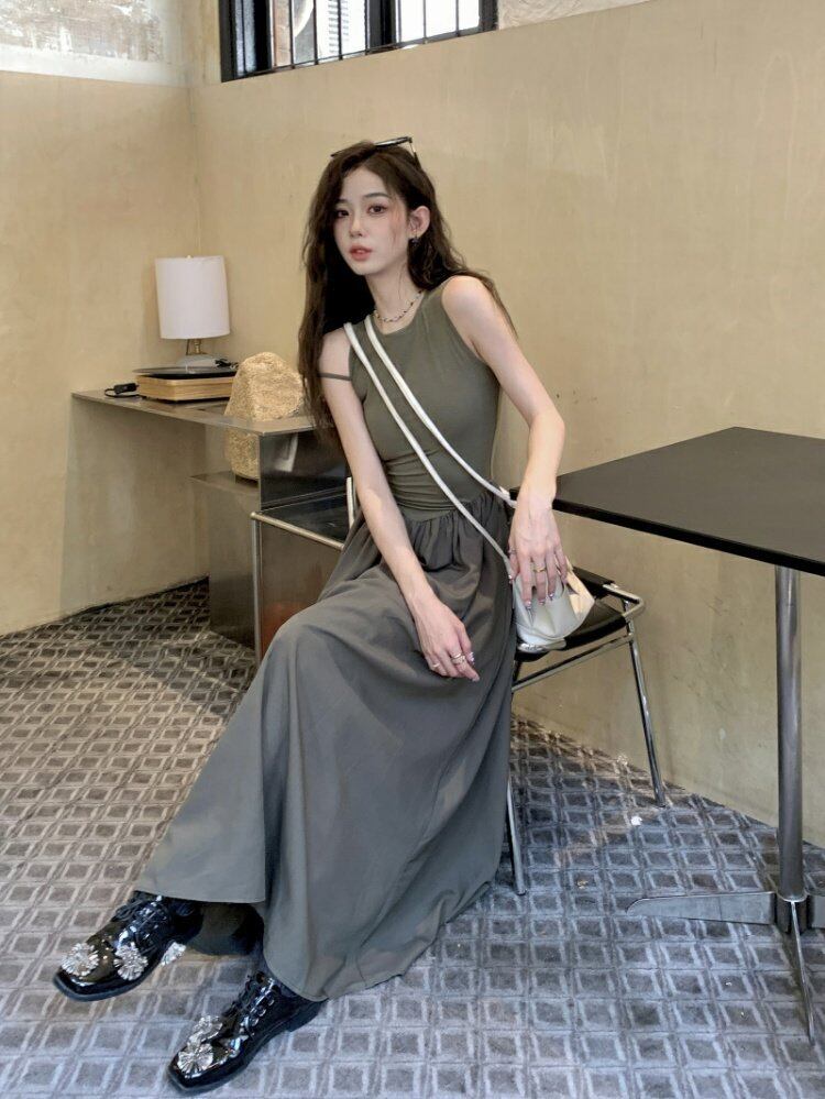 タンクトップトップス ドレス サマーウェストロングスカート 夏物 s576181358443142