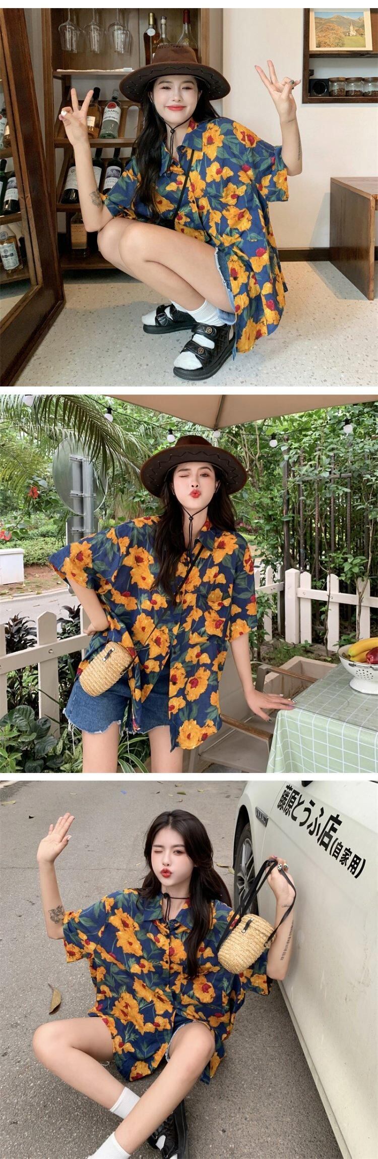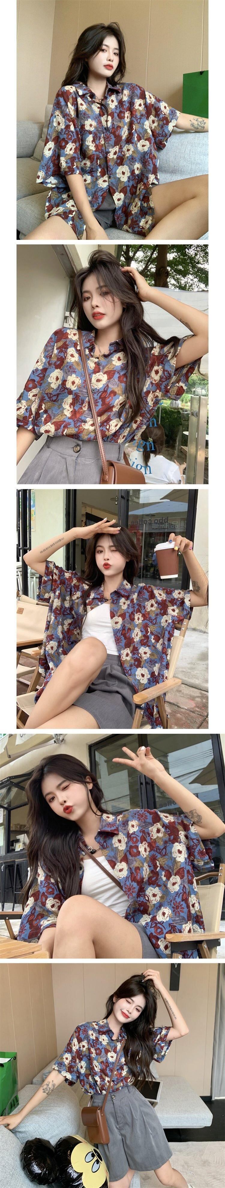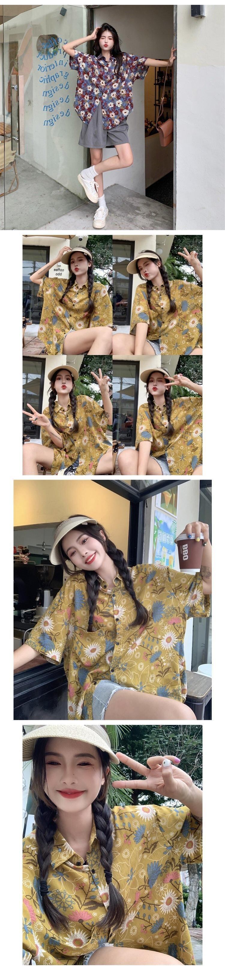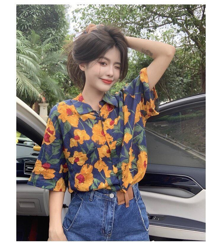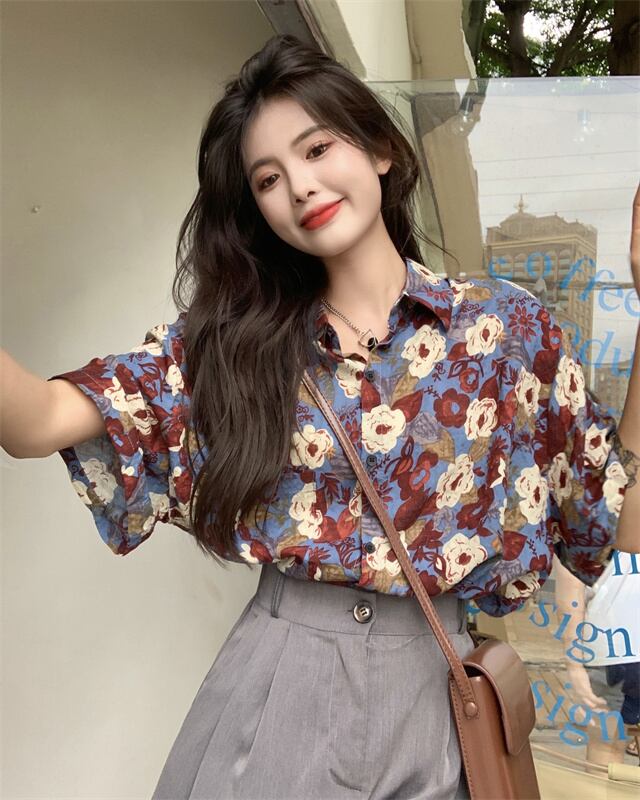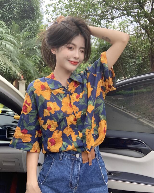 フローラルシャツ サマースタンダードトップス レトロ 大人ガーリー スウィート キュート カジュアル 夏物 花柄 s576187259511203