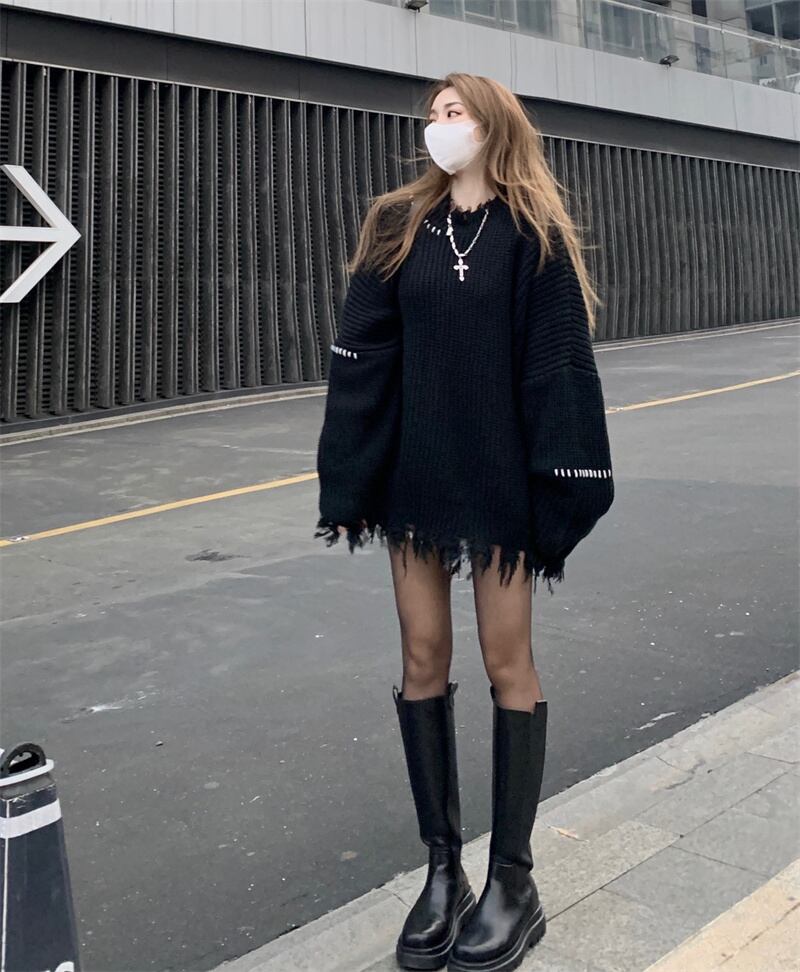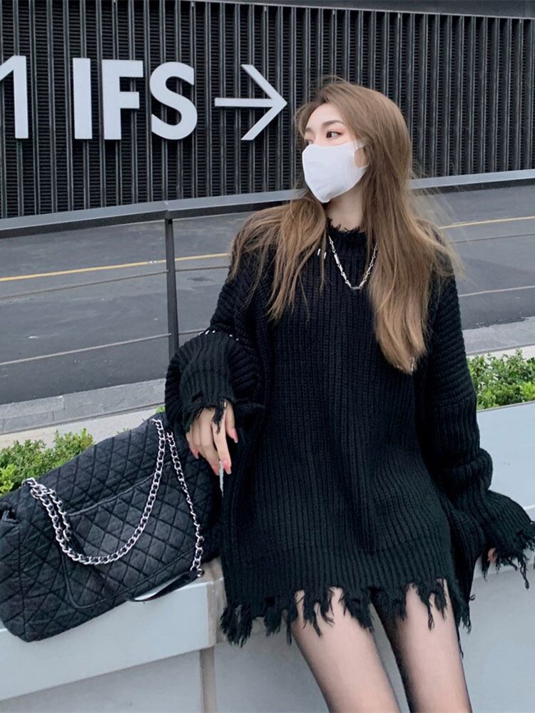 ブラックプルオーバー セーター オータムウィンタースタンダードニット レトロ 秋物 冬物 s576166700516990