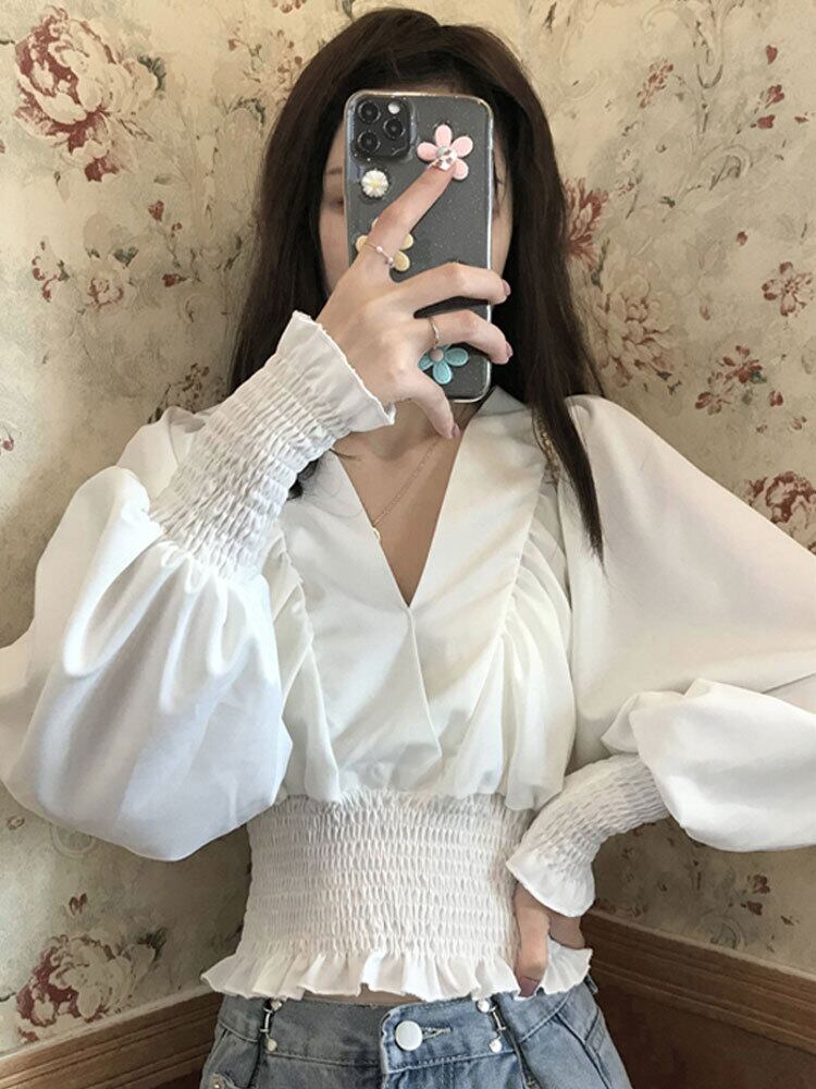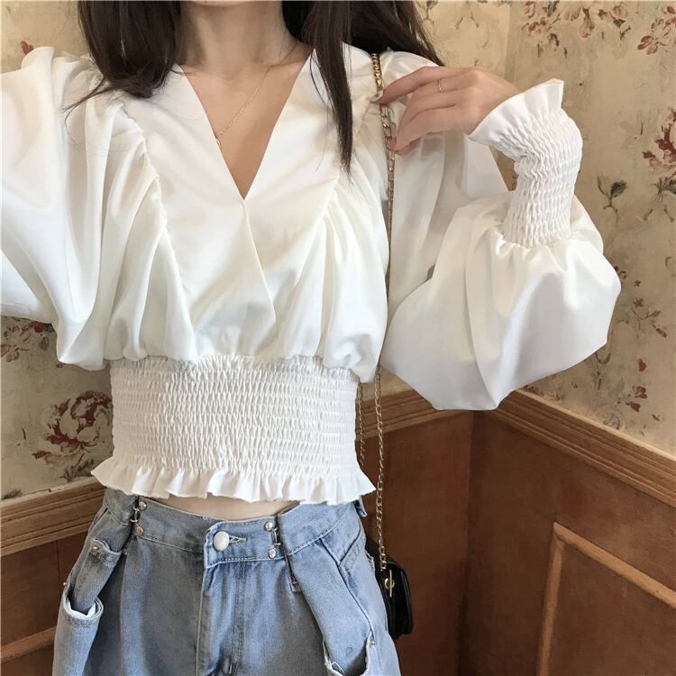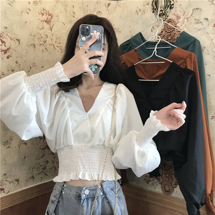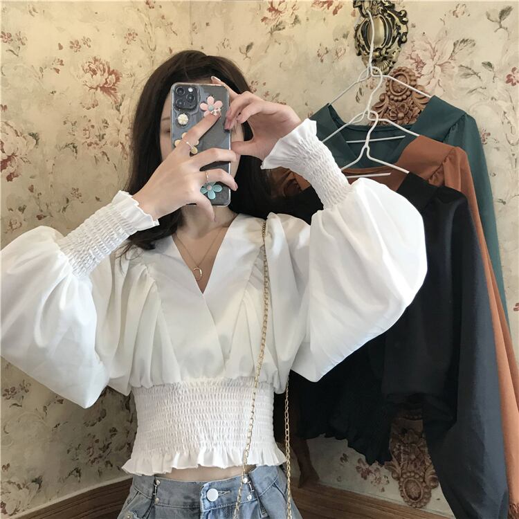 スプリングオータムショートトップス Vネックシャツ ロング 春物 秋物 s576178434400818
