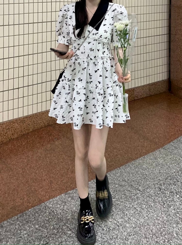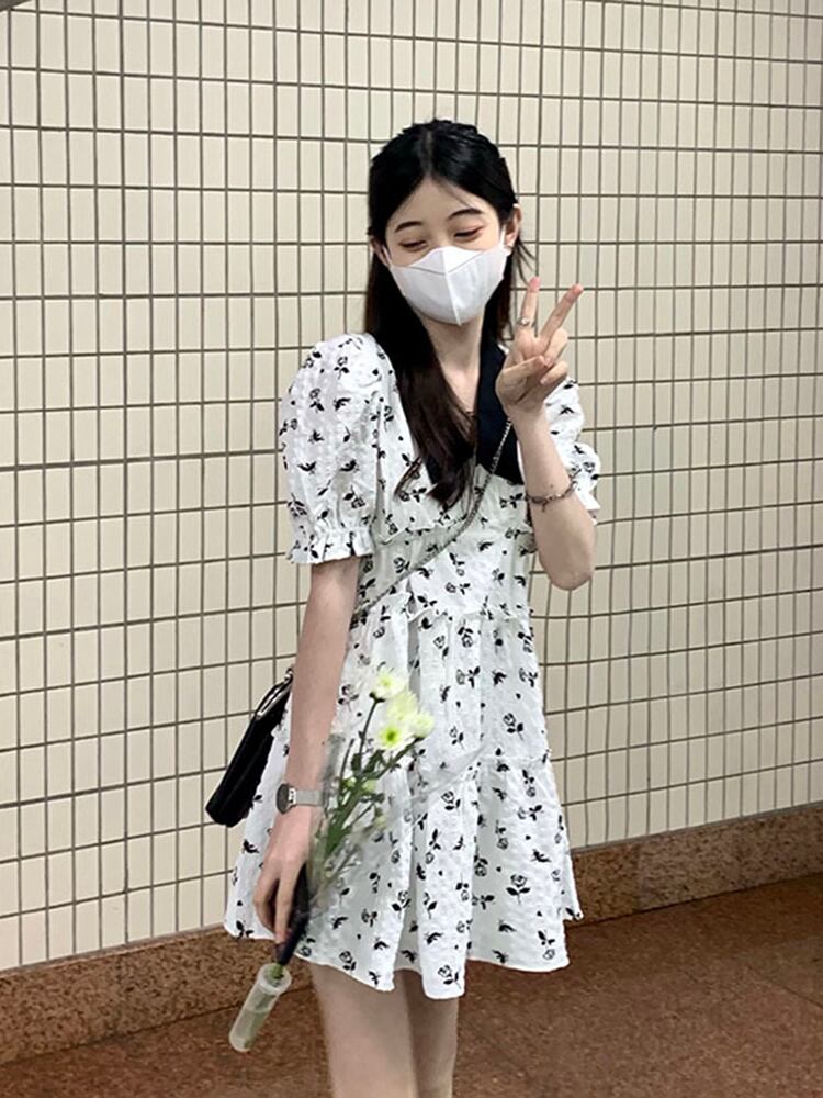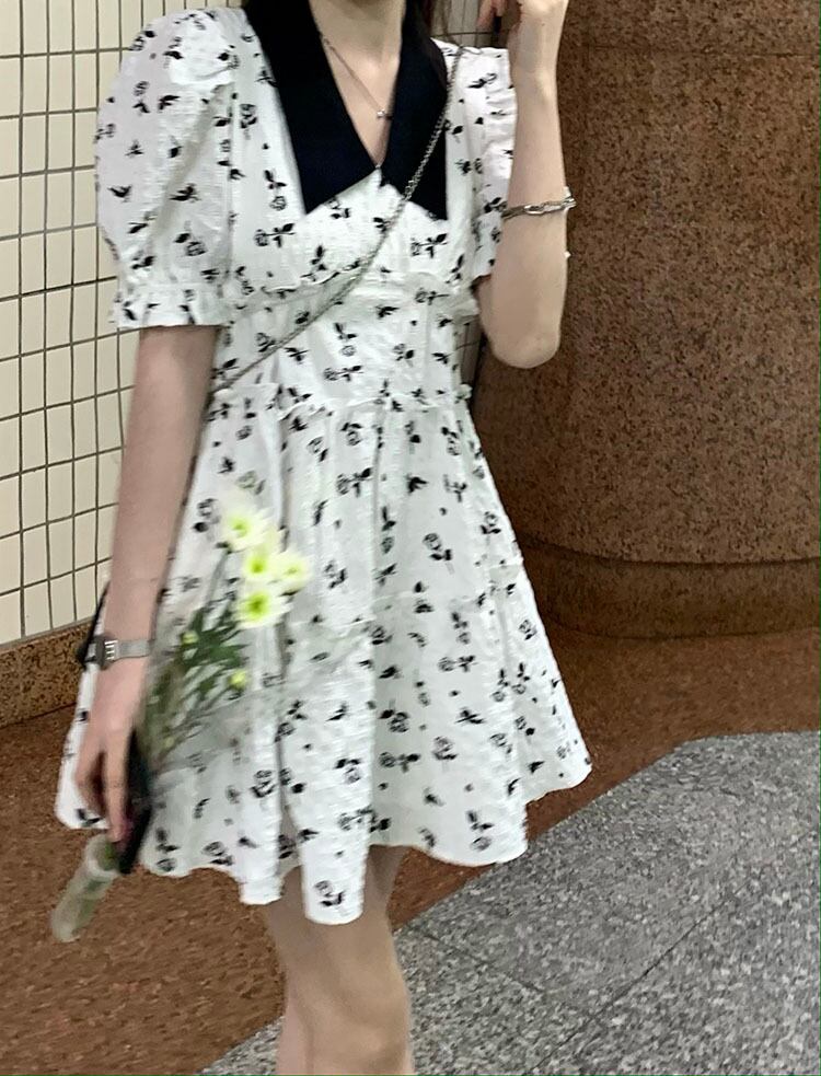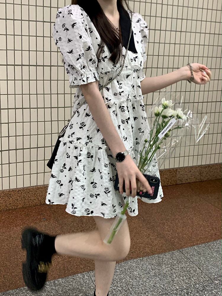 スリーブフローラルドレス サマースタイルスカート 大人ガーリー スウィート キュート カジュアル 夏物 花柄 s576118743261265