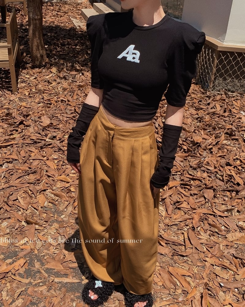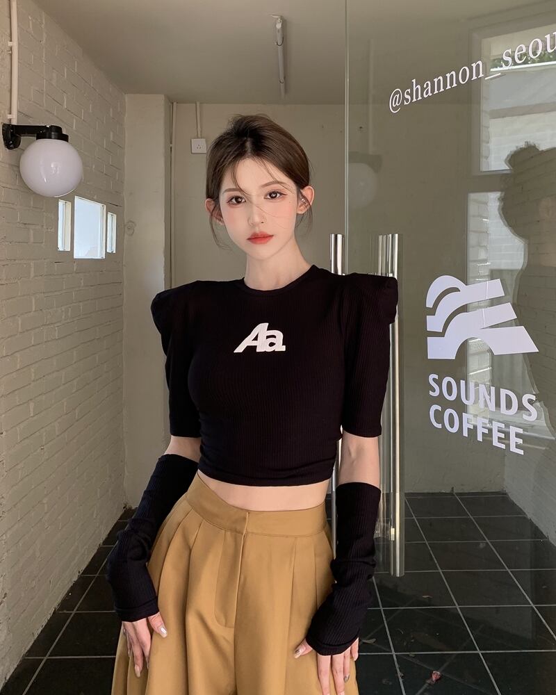 ショートトップス オータムスリーブTシャツ 秋物 ピュア s576188969262349