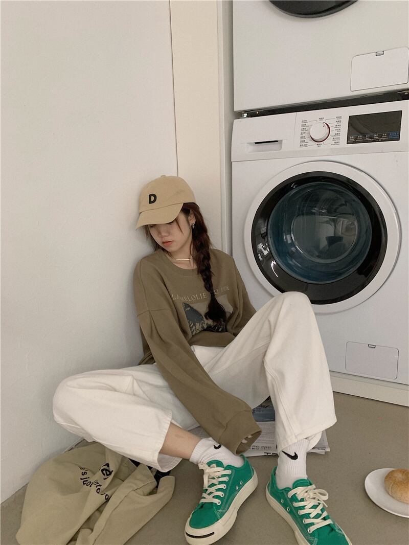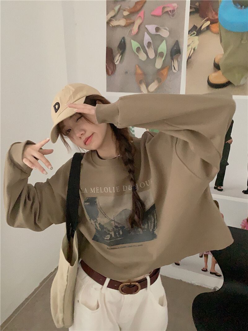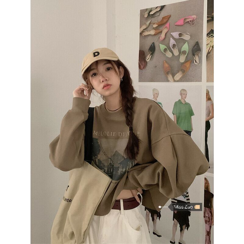 ラウンドネックプルオーバー セーター オータムスタンダードルーズショートトップス ロング レトロ 秋物 Oネック s576189724005793