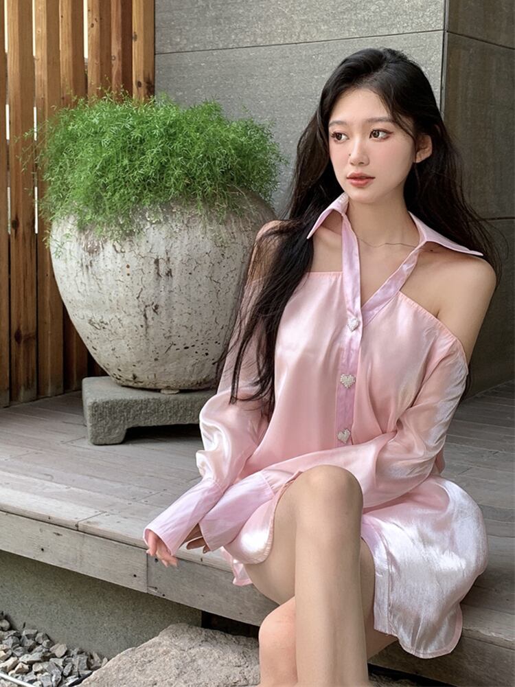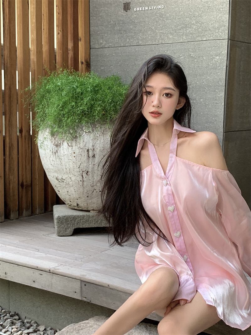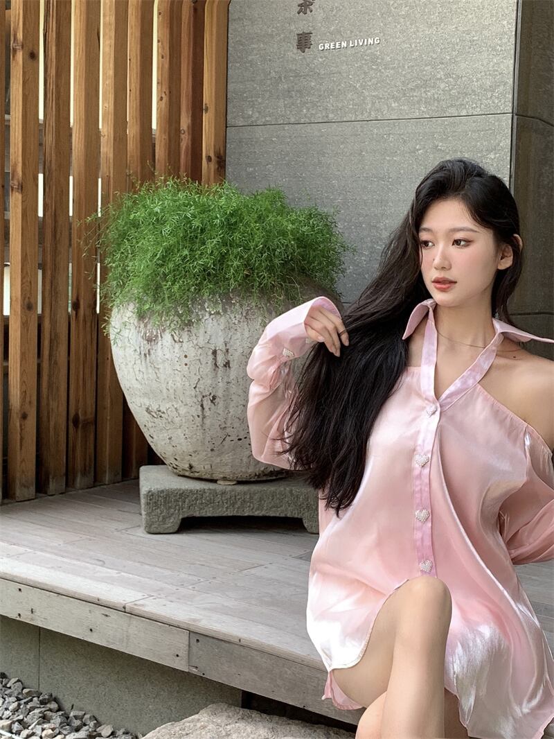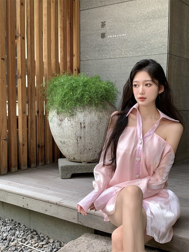 トップス 薄手オータムシャツ ロング ピンク 秋物 s57617970333775