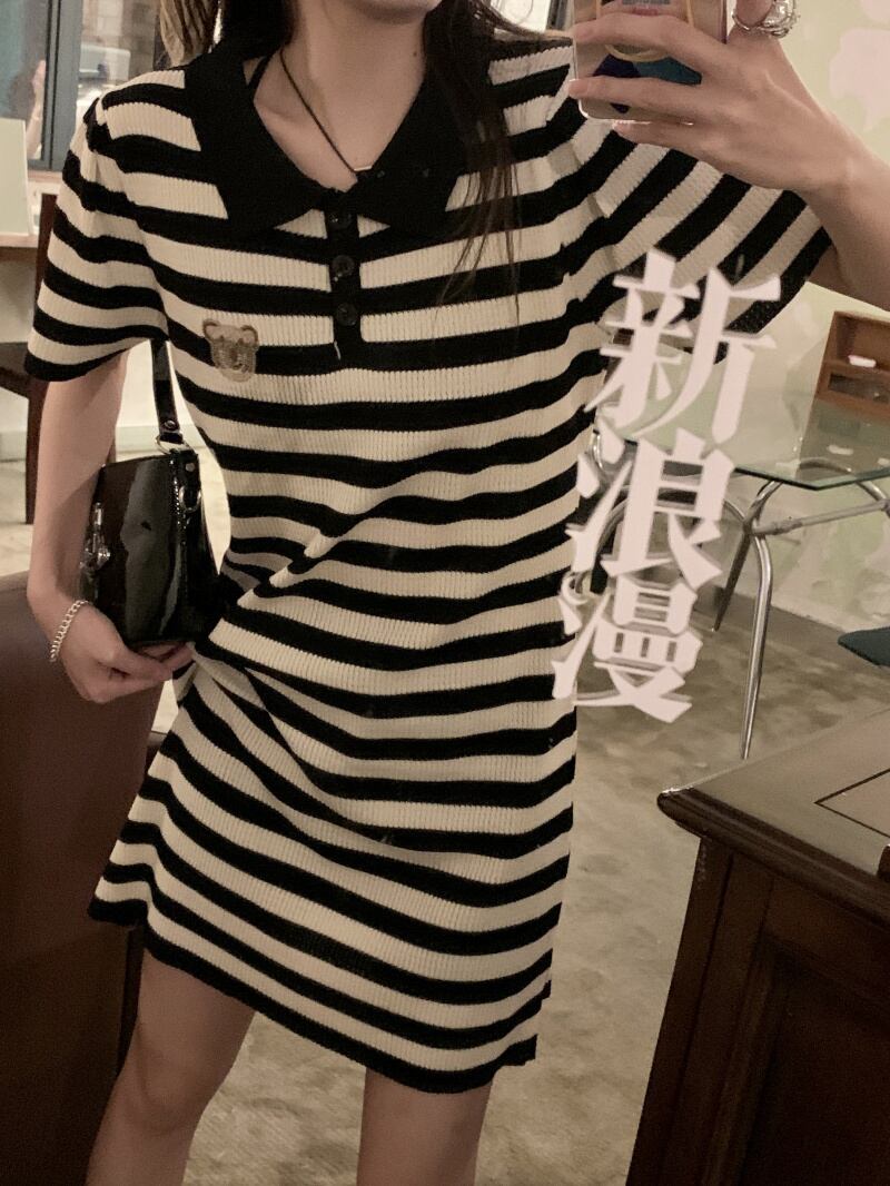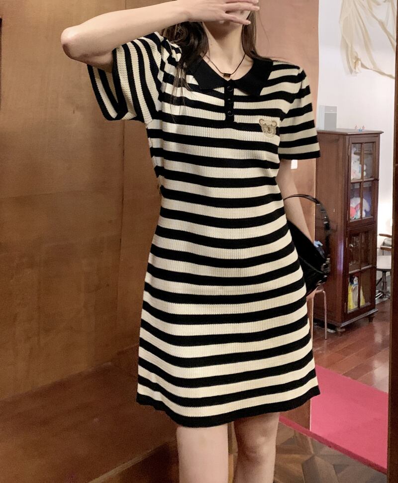 カラーストライプドレス サマースタンダードスタイルスカート レトロ 夏物 s576177020887771