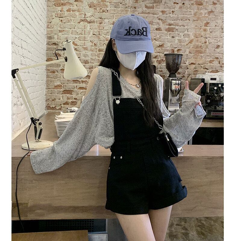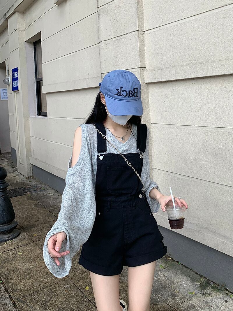 ブラックオーバーオール サマー薄手レッドショーツ 大人ガーリー スウィート キュート カジュアル 夏物 ブルマー s576173875930664
