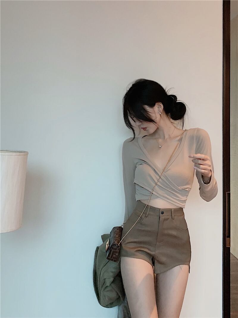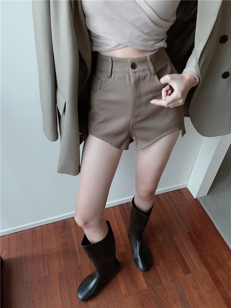 スプリングオータムスタイルハイウェストウェストパンツ スリムブラックショーツ 春物 秋物 ブルマー ピュア s576138587828385