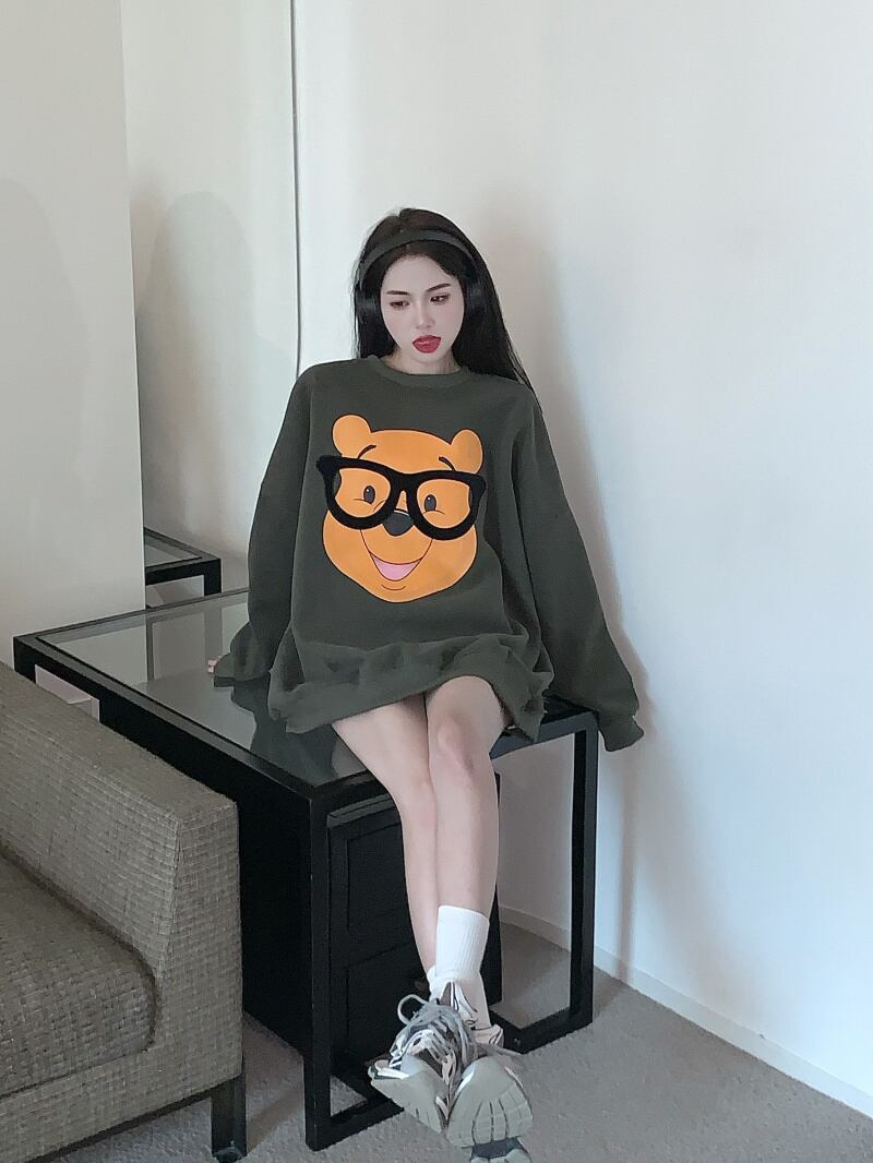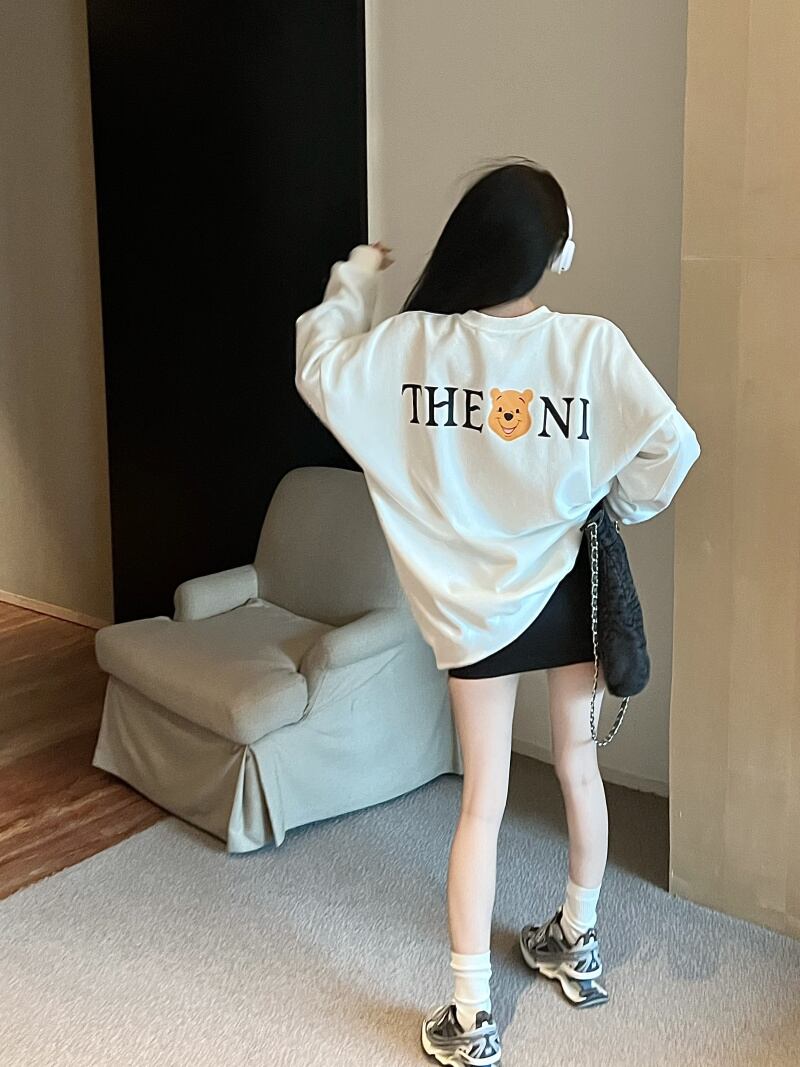 ホワイトラウンドネックセーター オータムルーズスタイルトップス ロング 秋物 Oネック s576174882099537