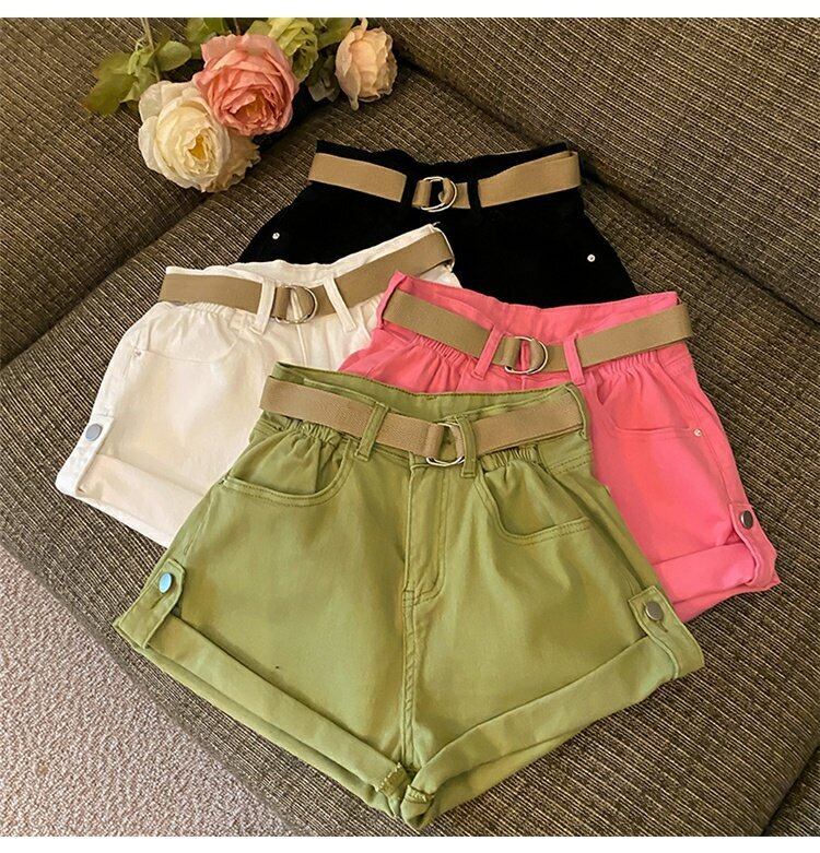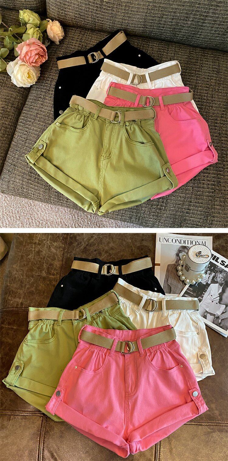 グリーンショーツ サマー薄手レッドスタイルハイウェストウェストルーズAラインパンツ 夏物 ブルマー s576174078176296