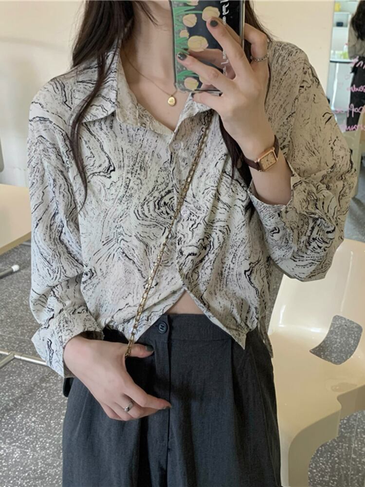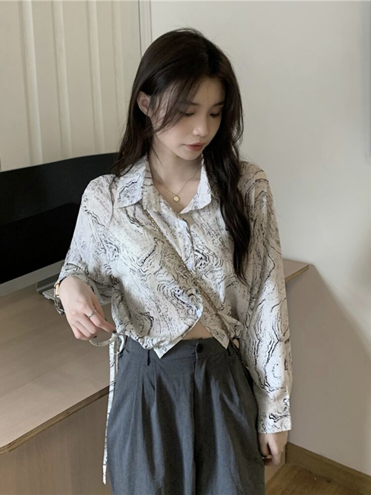 スタイルシャツ オータム薄手ショートシフォントップス ロング 秋物 s576179669986317