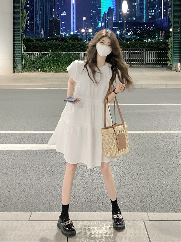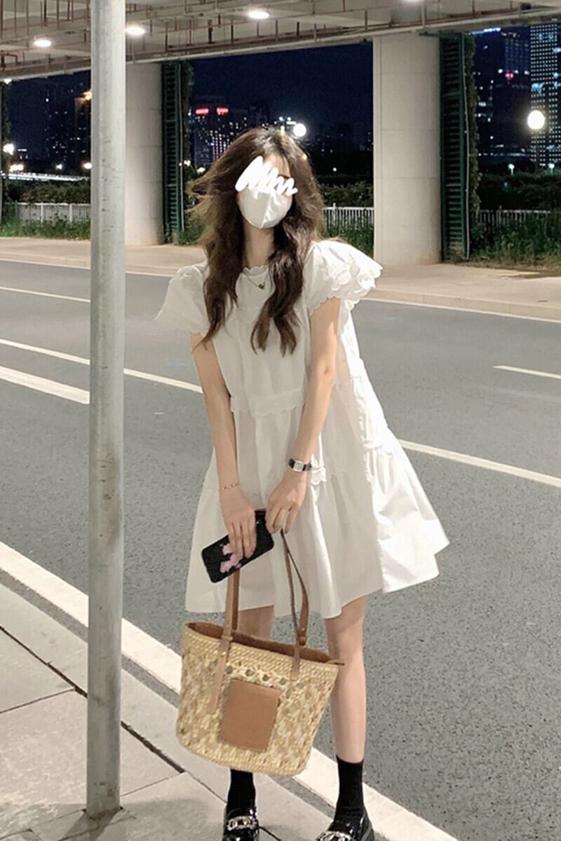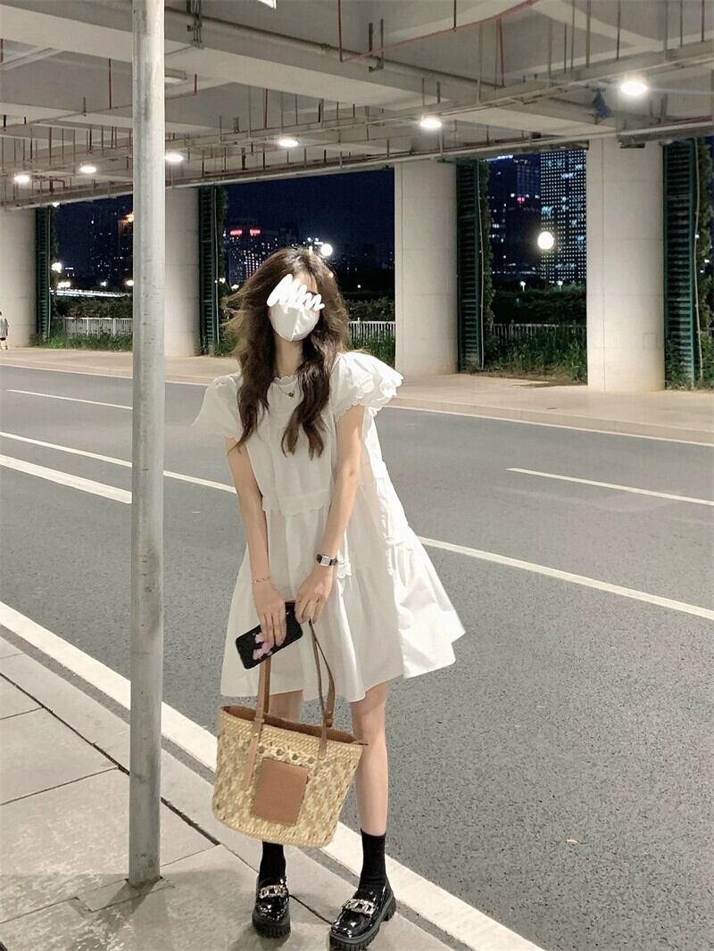 白いパフスリーブドレス女性の夏のデザインセンス小さなスタイル甘くて優しい風シックなスカート ホワイト 大人ガーリー スウィート キュート カジュアル サマー 夏物 8571639041088155
