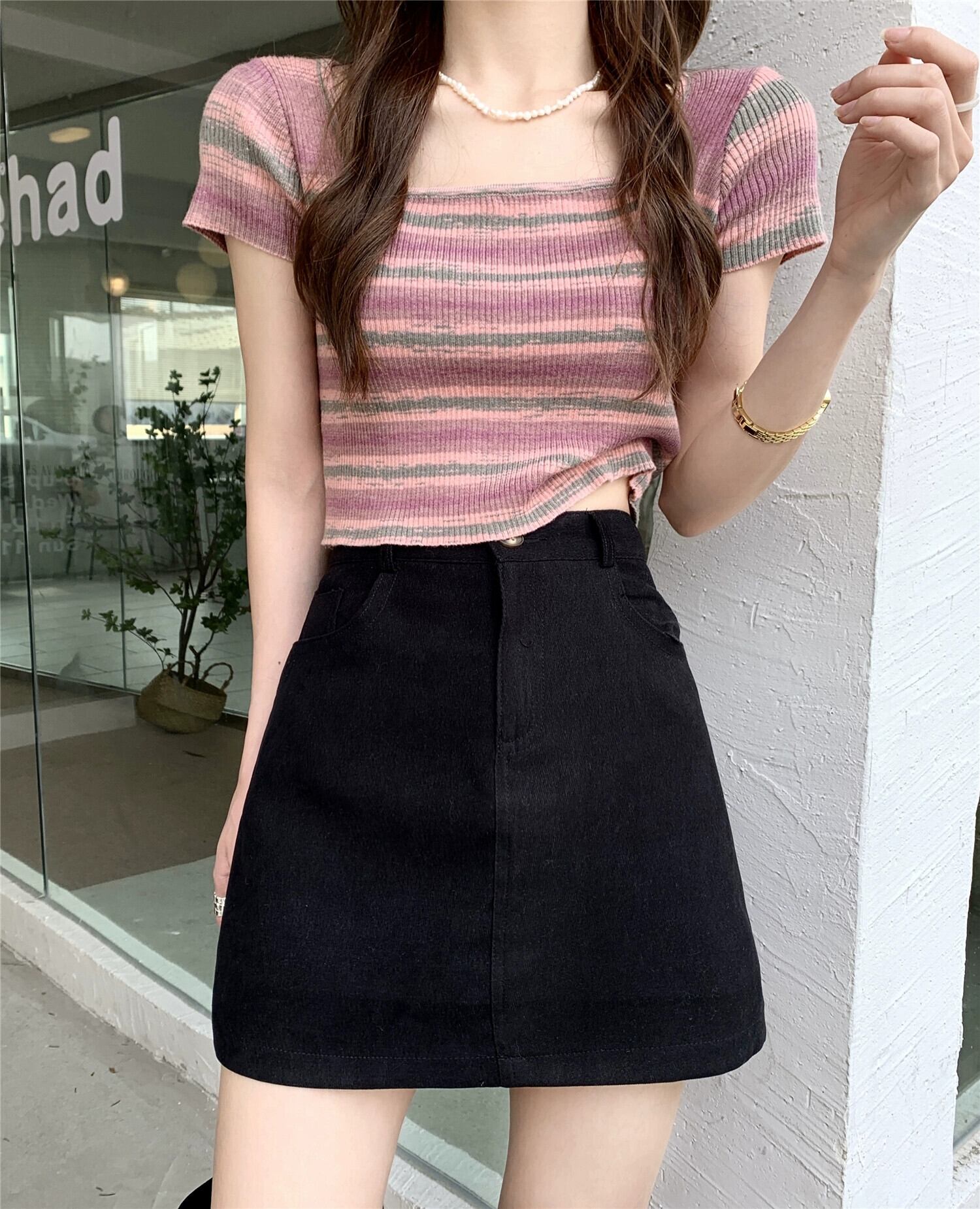 甘いピンクのスカート女性の夏小さな袴 2023 新しいハイウエスト a ラインスカートバッグヒップショートスカート ハイウェスト 大人ガーリー スウィート キュート カジュアル サマー 夏物 Aライン 8571669446019992