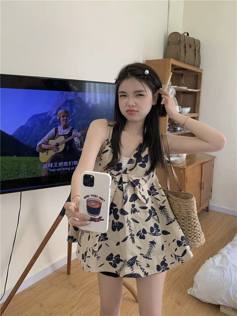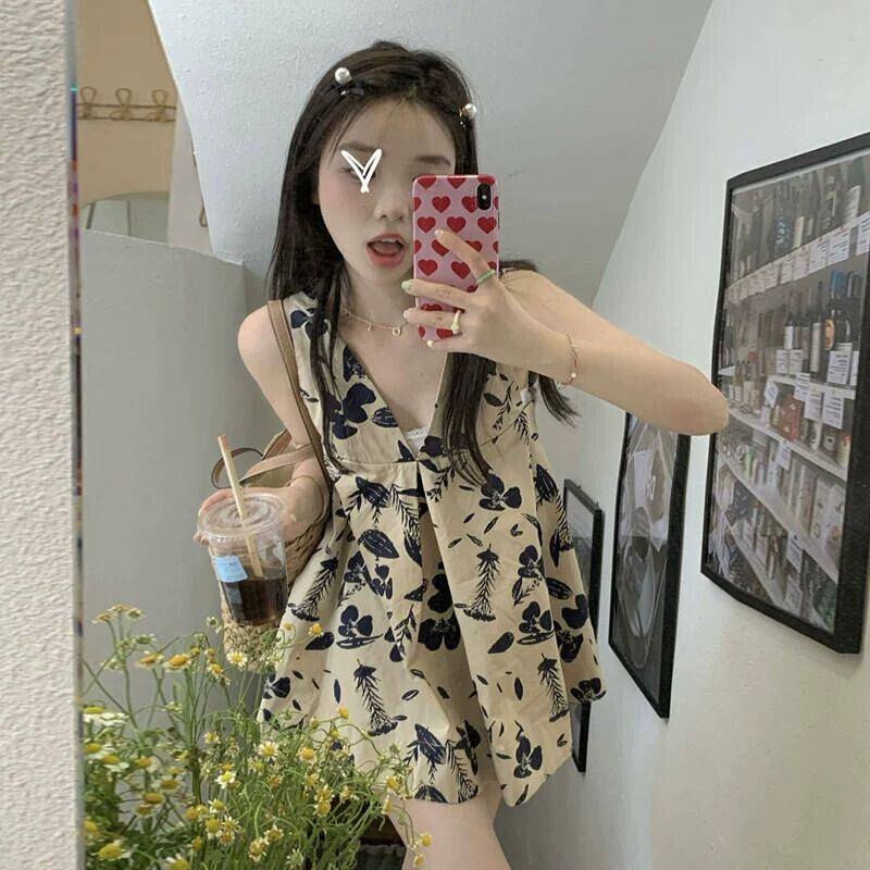 スタイルスモールトップ女性の夏のデザインセンスニッチ優しい風小さなシャツ2023新しいノースリーブ花柄シャツ サマー 夏物 8571619800667451
