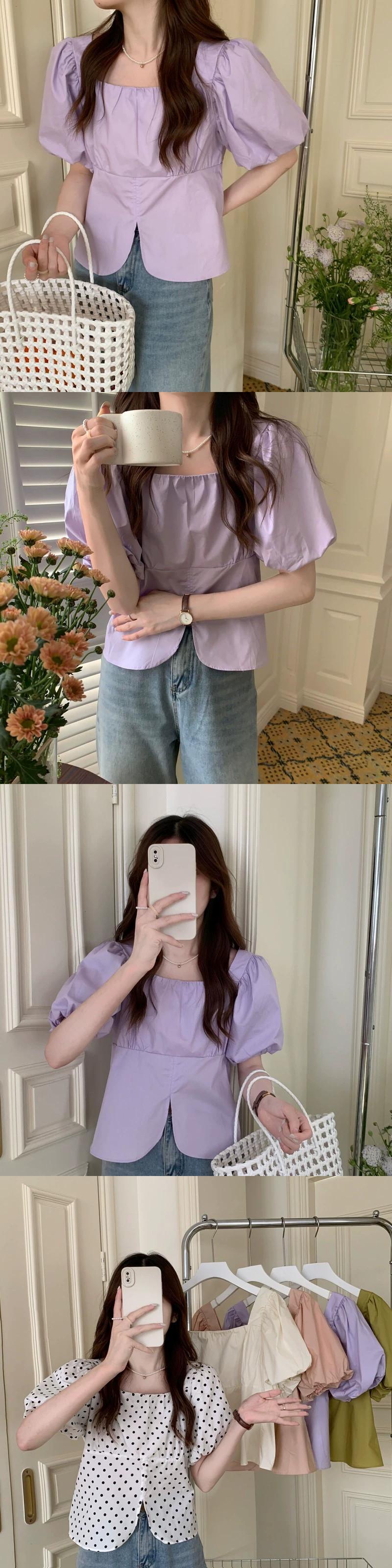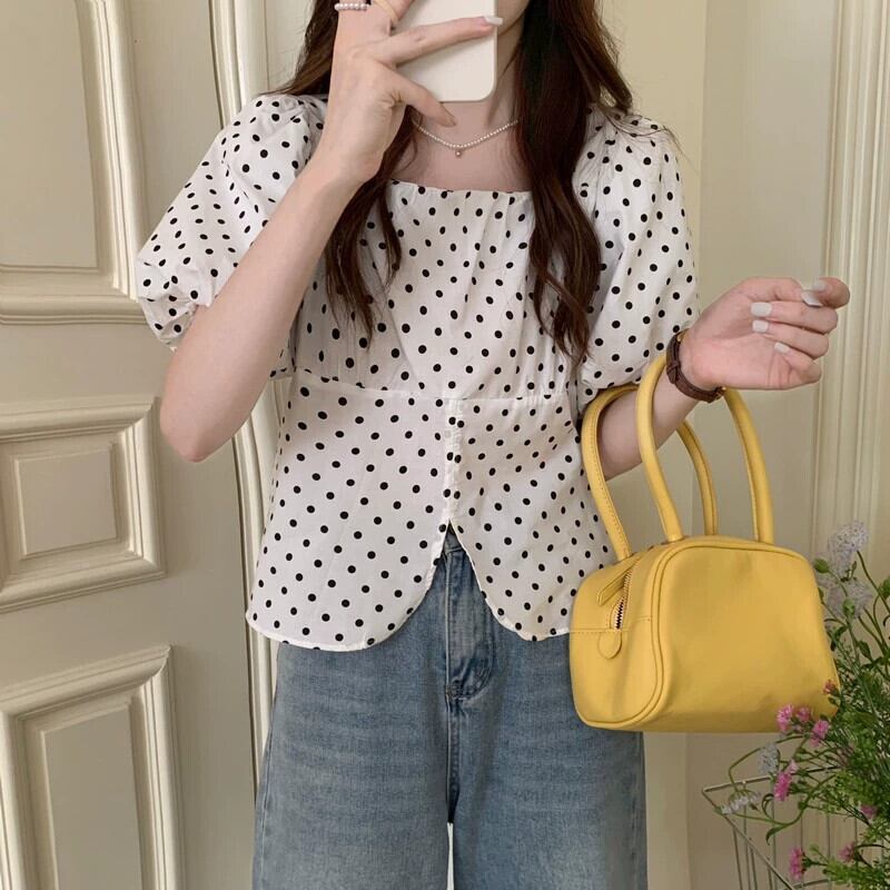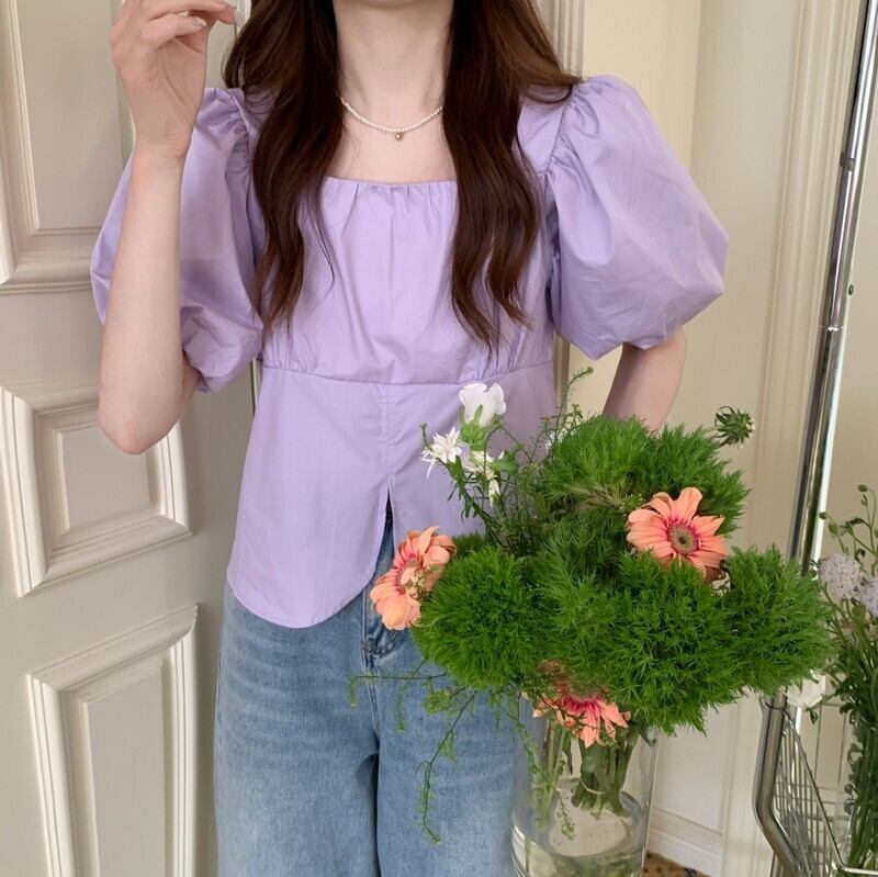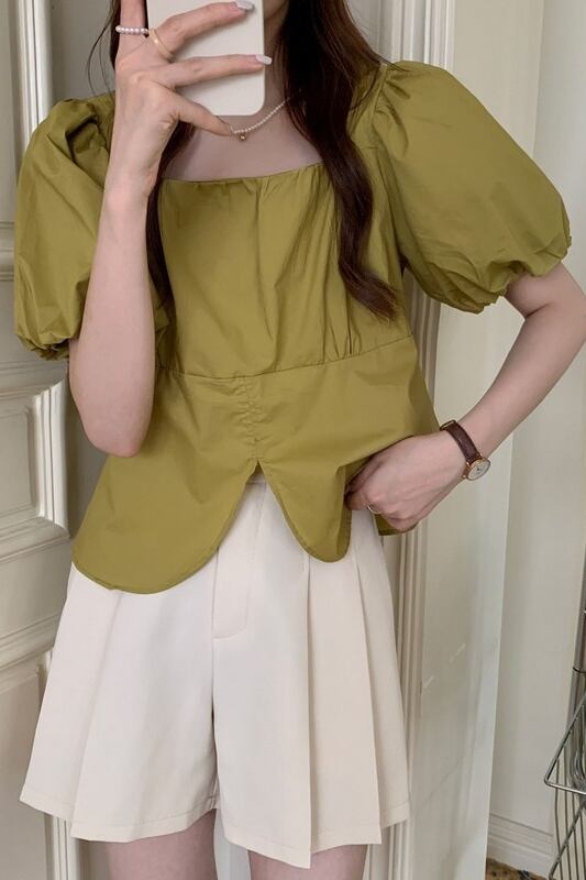 フレンチスクエアカラーパフスリーブトップ女性の夏のデザインセンスニッチ2023新しい気質優しい風半袖シャツ サマー 夏物 スクウェア 8571633189490477