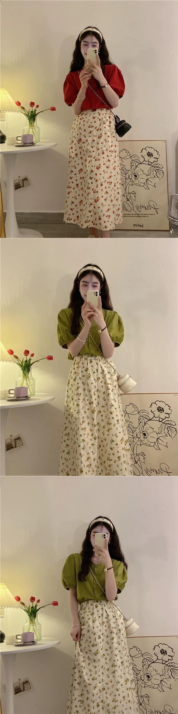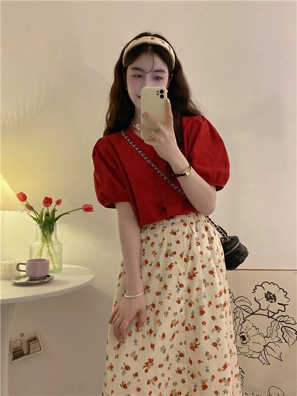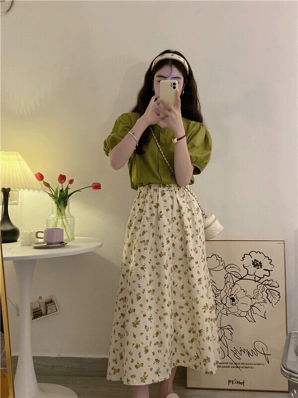 ミッドレングスの花柄スカートの女性の夏の a ラインスカート 2023 新しい小さな背の高いウエスト痩身ヒップカバーロングスカート サマー 夏物 Aライン 8571646481938201