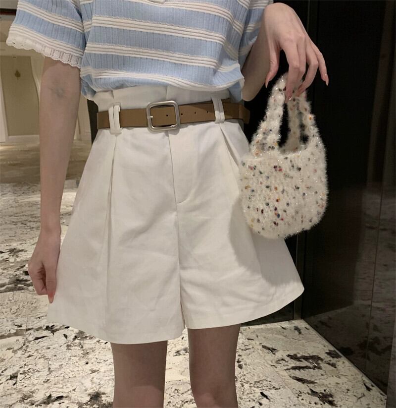 色:ブルーストライプトップ,ホワイトショーツ,黒のショートパンツ,カーキショートパンツ
