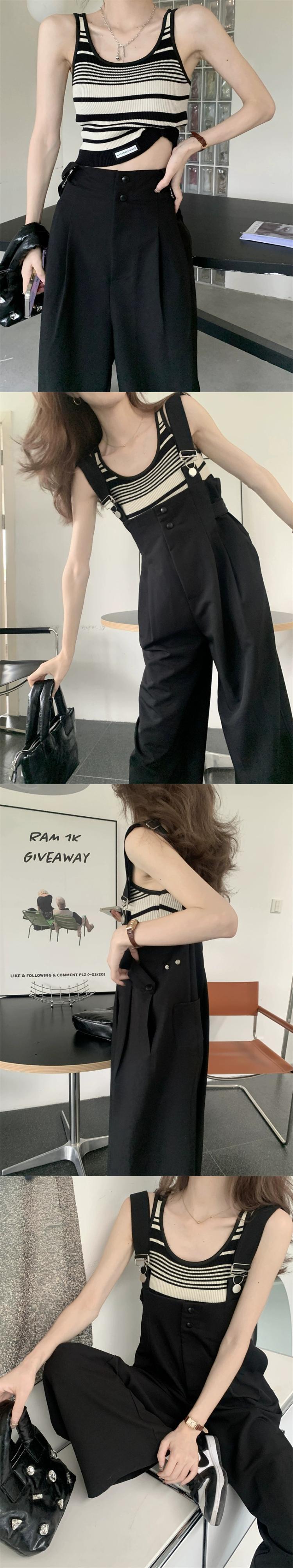 色:黒いオーバーオール,ホワイトベストワンサイズ,ワンサイズのストライプベスト