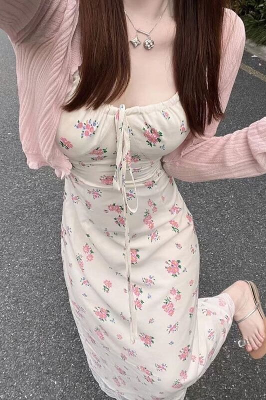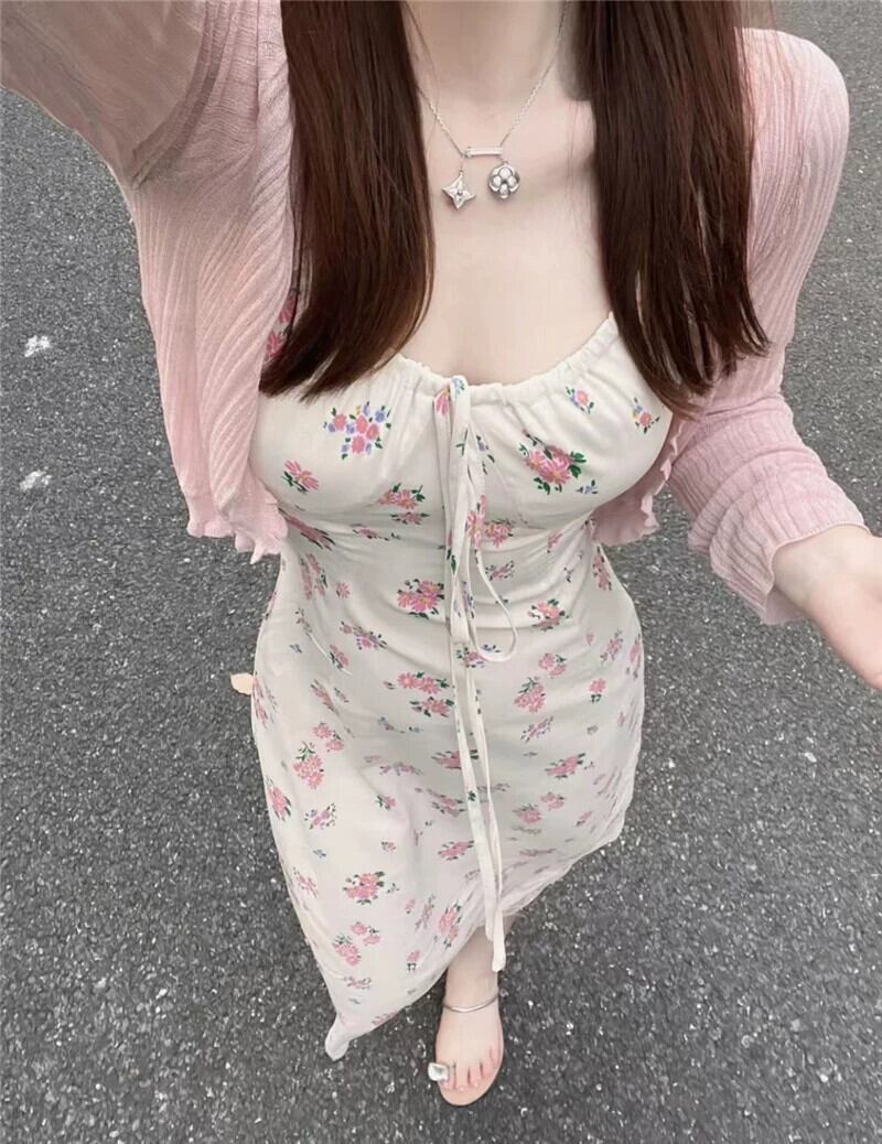 花柄スリングドレスの女性の 2023 夏の新しい気質女神ファン高レベルのシックなユニークな甘いロングスカート 大人ガーリー スウィート キュート カジュアル サマー 夏物 8571659490529968