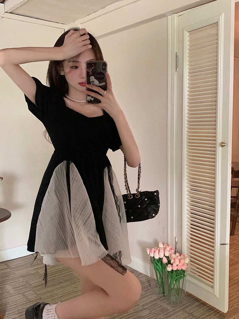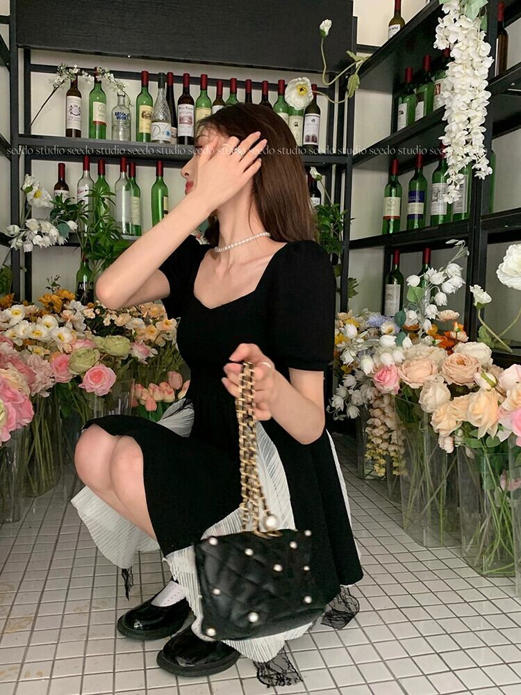 フレンチレースステッチドレス女性の夏の2023新しいウエストウエスト純粋な欲望スリムAラインスカート サマー 夏物 ピュア 857169418829464