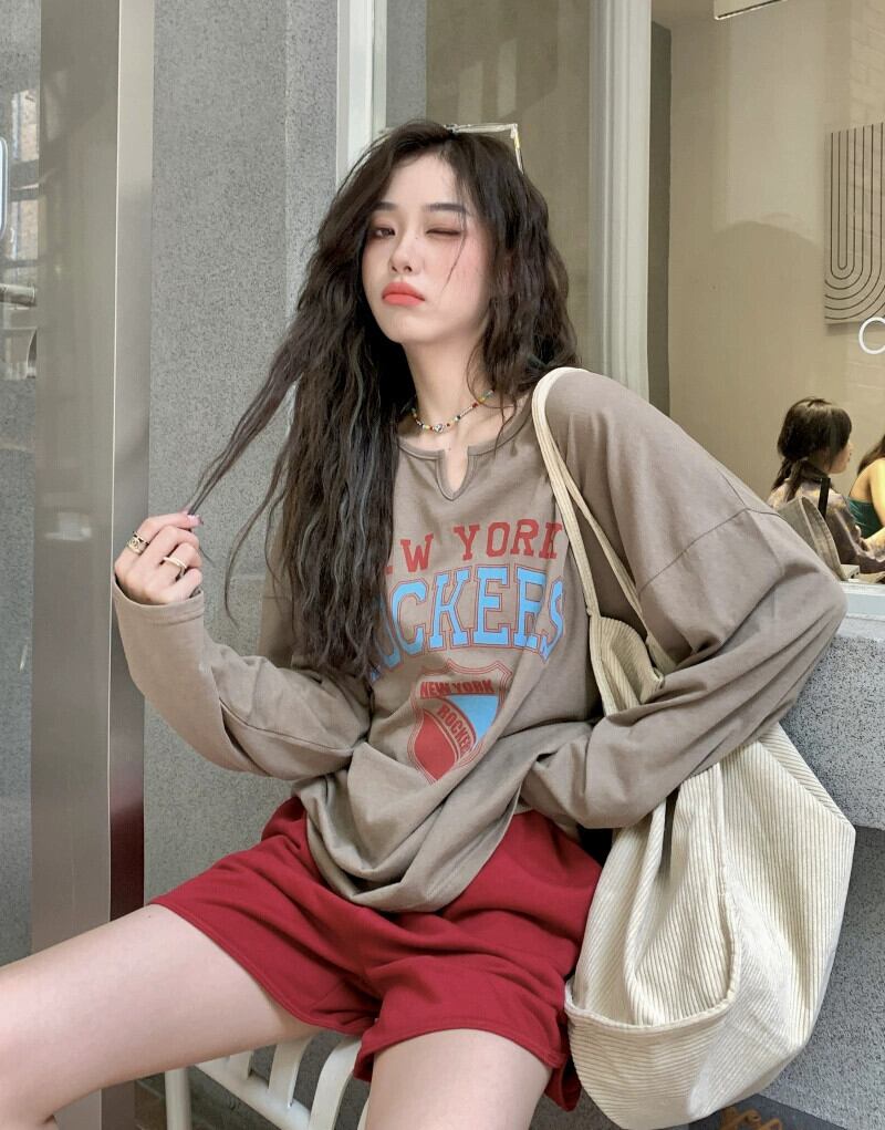 日焼け止め長袖 Tシャツ女性の夏薄いセクション 2023 新しいアメリカンスタイルのレトロな緩い大型バージョンのデザインニッチトップ ロング サマー 夏物 857164928886752
