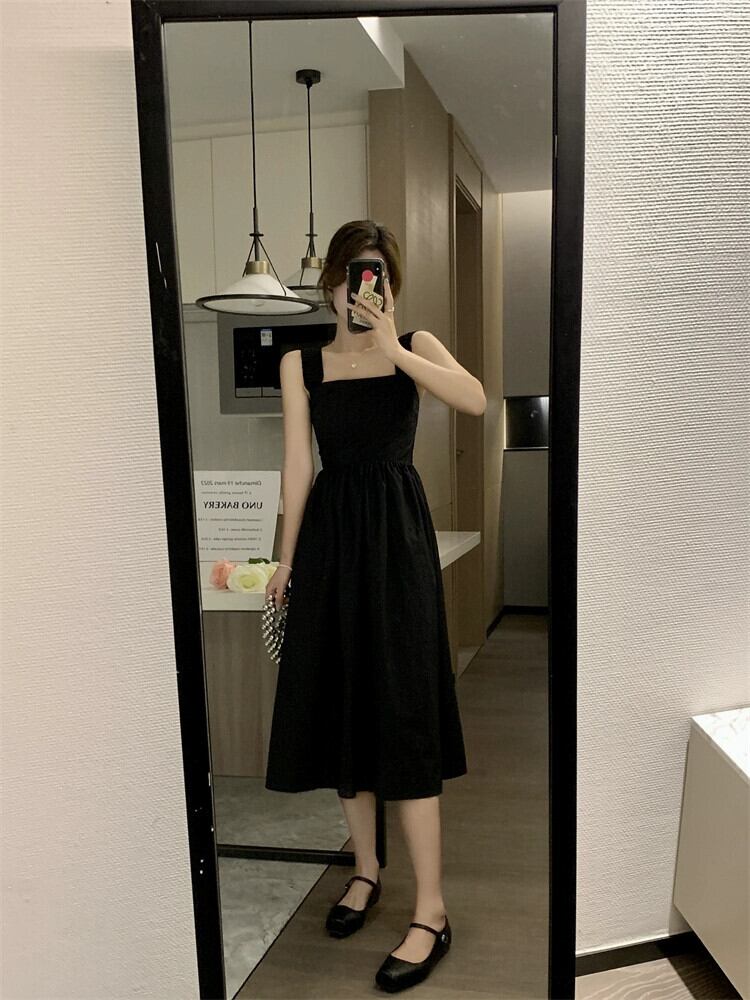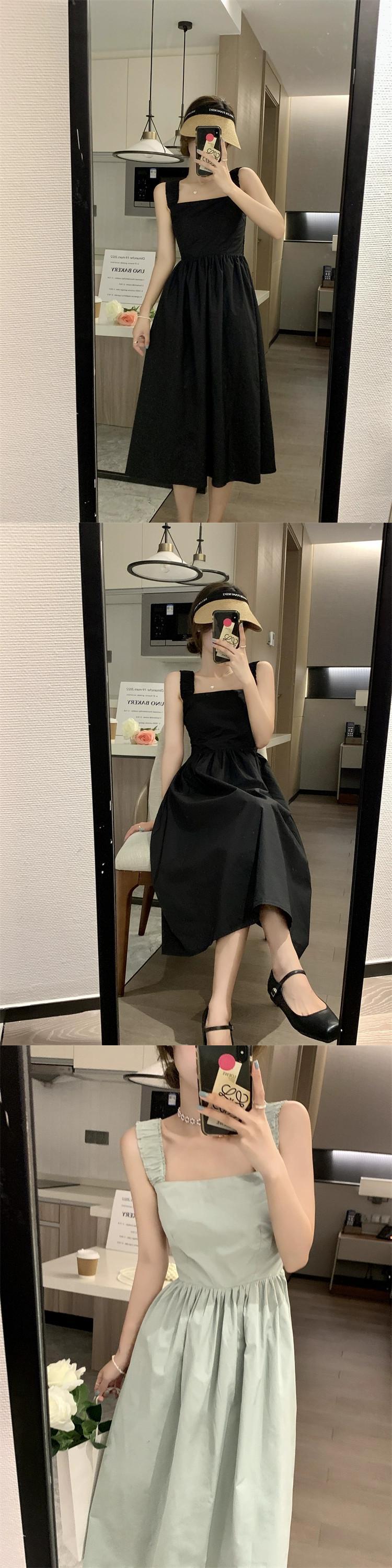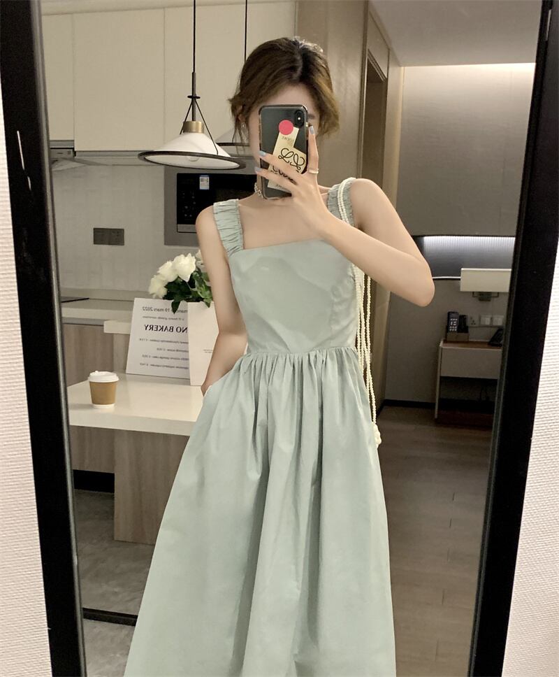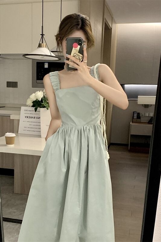 スタイルシックな白サスペンダースカート女性の夏のウエスト痩身スプライシングプリーツ大スイングノースリーブドレスロングスカート ホワイト サマー 夏物 8571663200090526