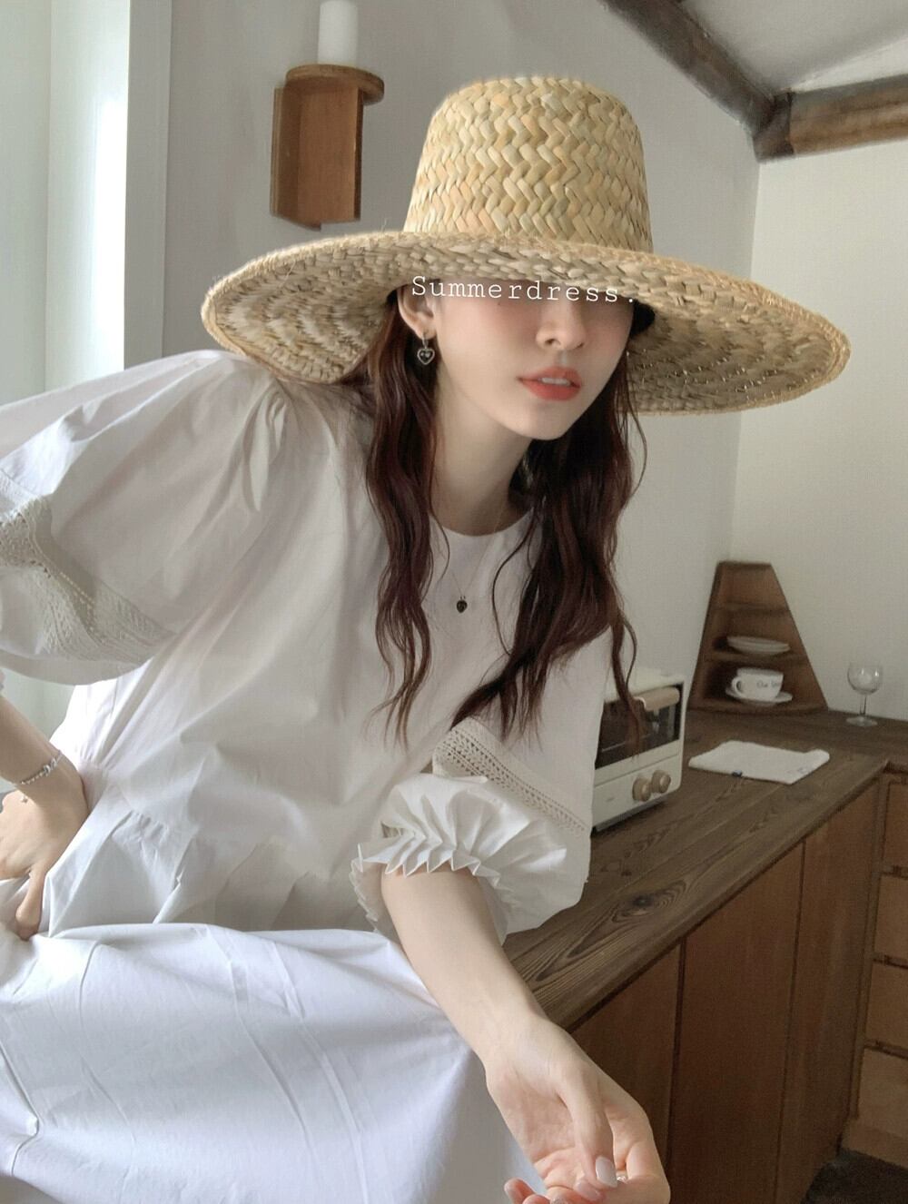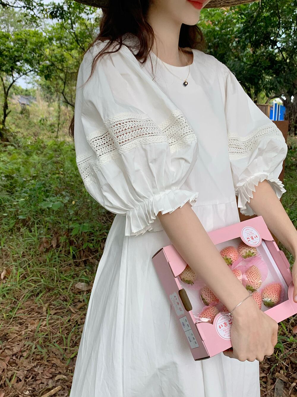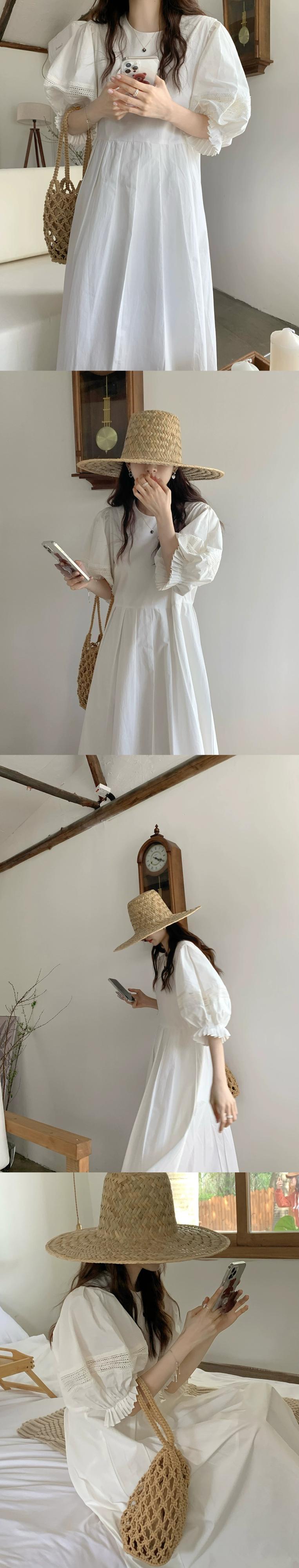 白いパフスリーブドレスの女性の2023夏の新しいハイエンドスタイルの優しいスタイルのミニマリストロングスカート ホワイト サマー 夏物 8571690040777587