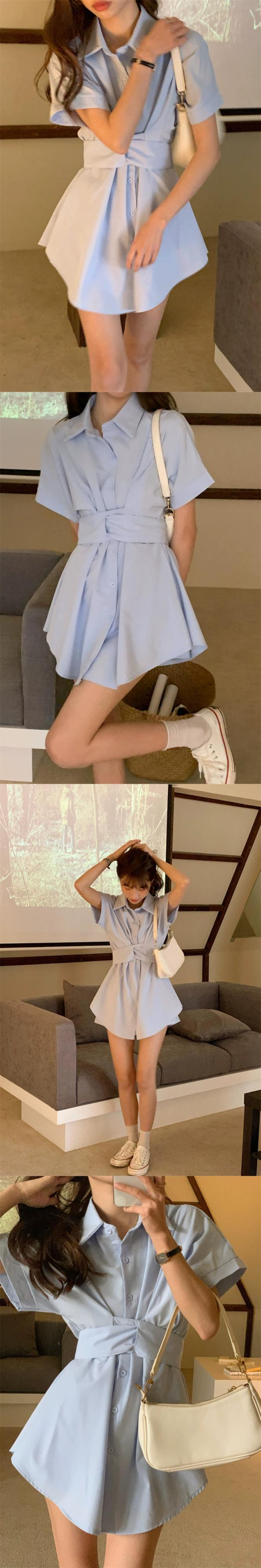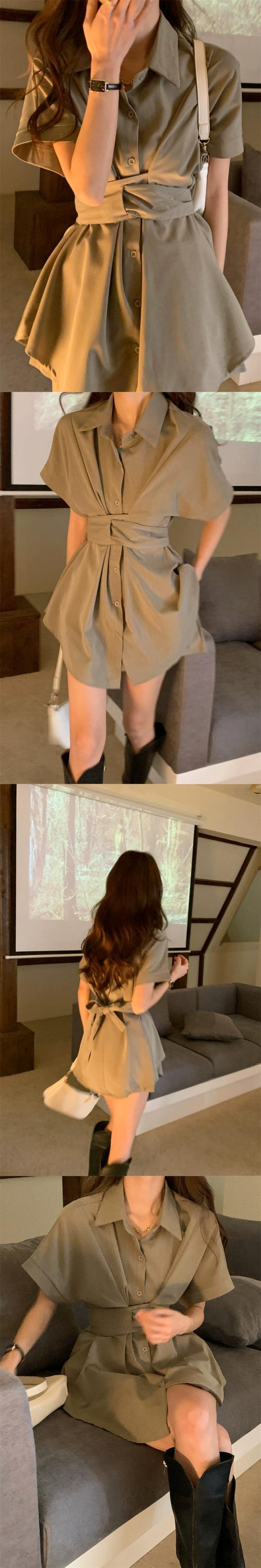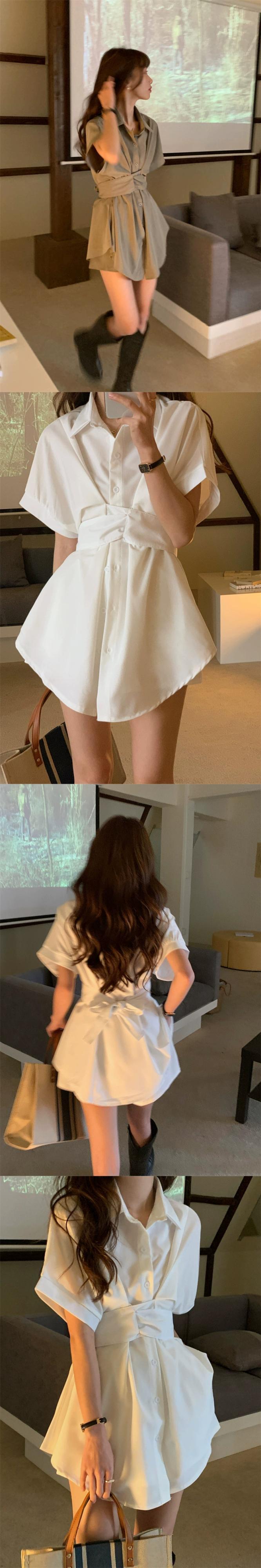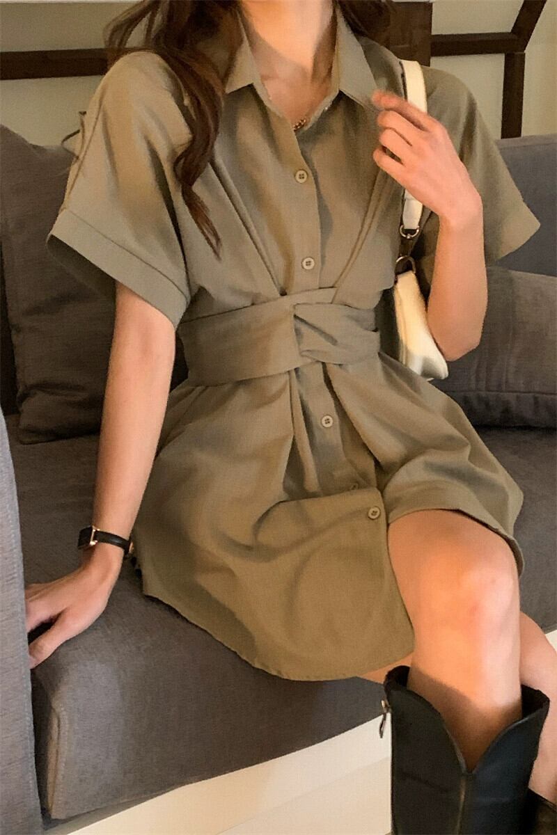 シャツドレスレディース2023夏新デザインセンスニッチ気質軽くて馴染みのある風小さいウエストショートスカート サマー 夏物 8571659810357591