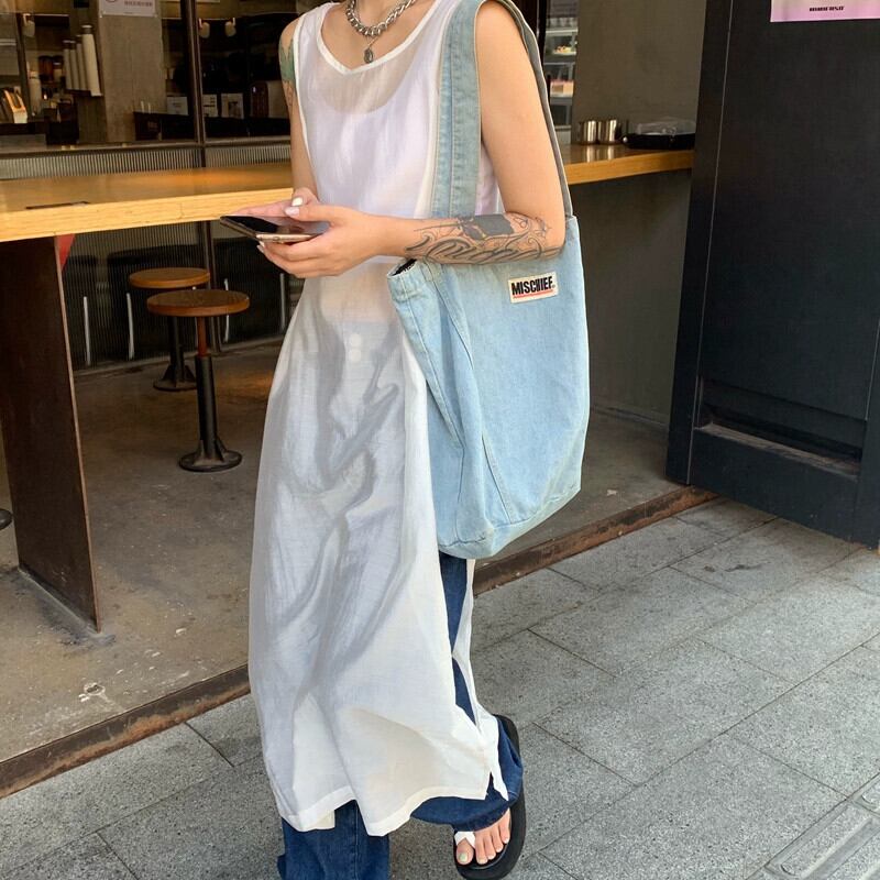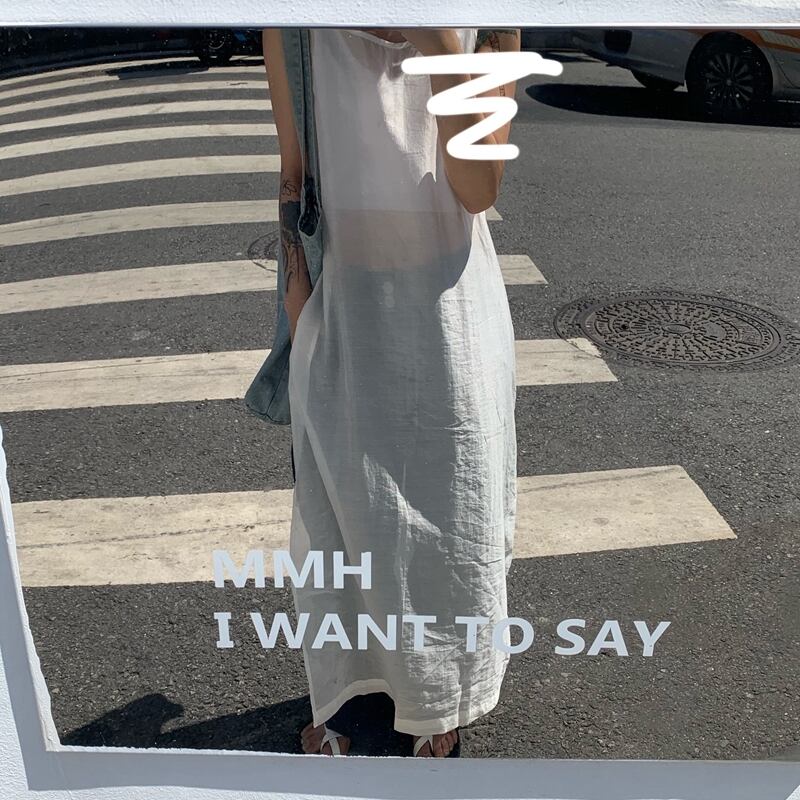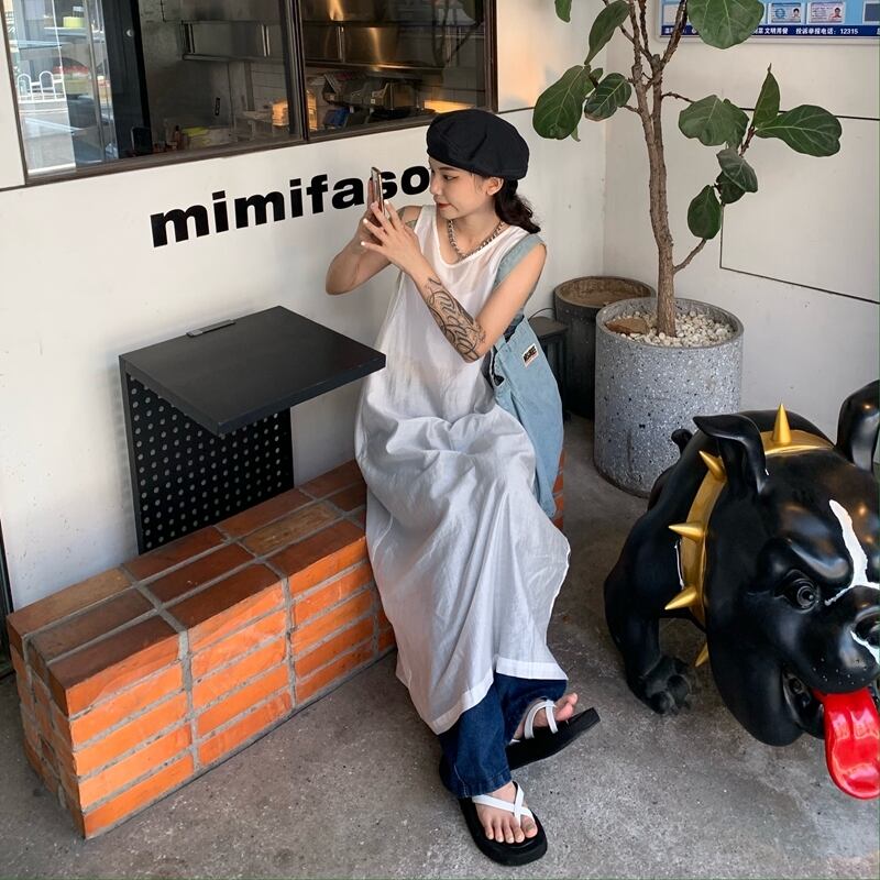 ホワイトノースリーブTシャツレディース夏薄セクションブラウス2023新しいデザインセンスミッドレングススリットトップ服 サマー 夏物 8571675704274095