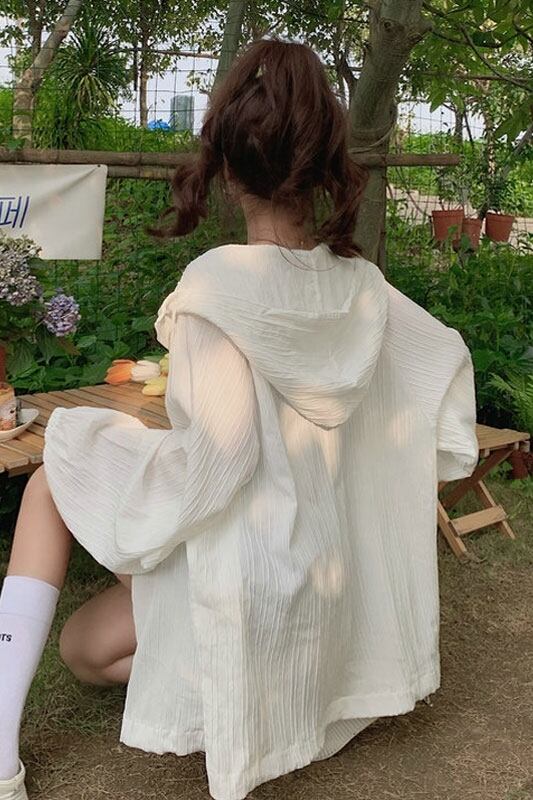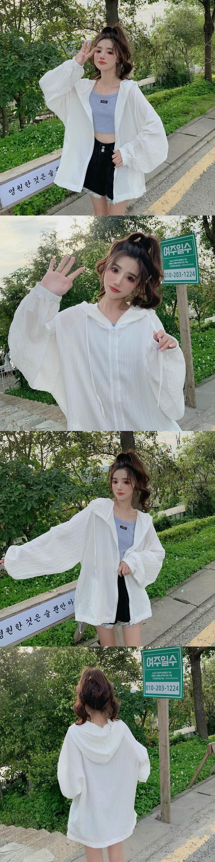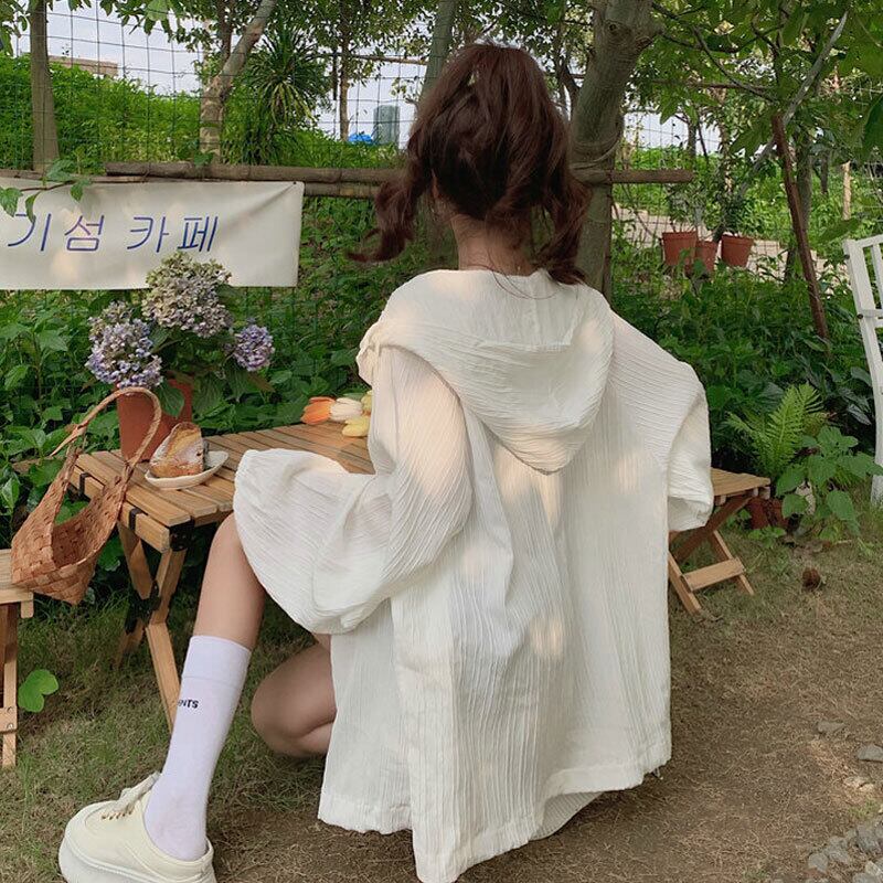白い日焼け防止服の女性の夏の薄いシャツジャケット 2023 新しい屋外 UV 保護通気性オールマッチカーディガン ホワイト サマー 夏物 8571649861918360