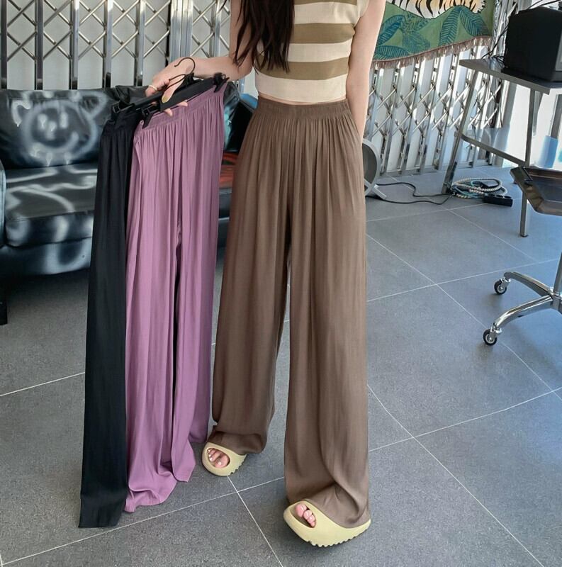 ピンクパープルワイドレッグパンツレディース夏薄セクション日焼け止めクールパンツハイウエストストレートルーズルーズ肉カバーカジュアルモップパンツ ハイウェスト サマー 夏物 857169426080164
