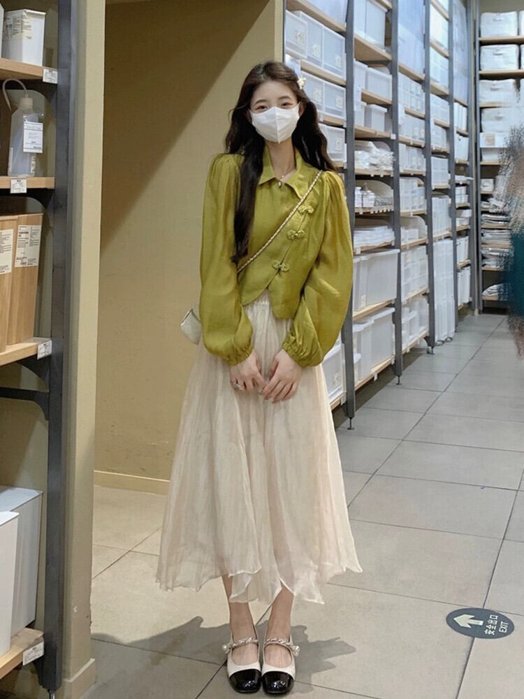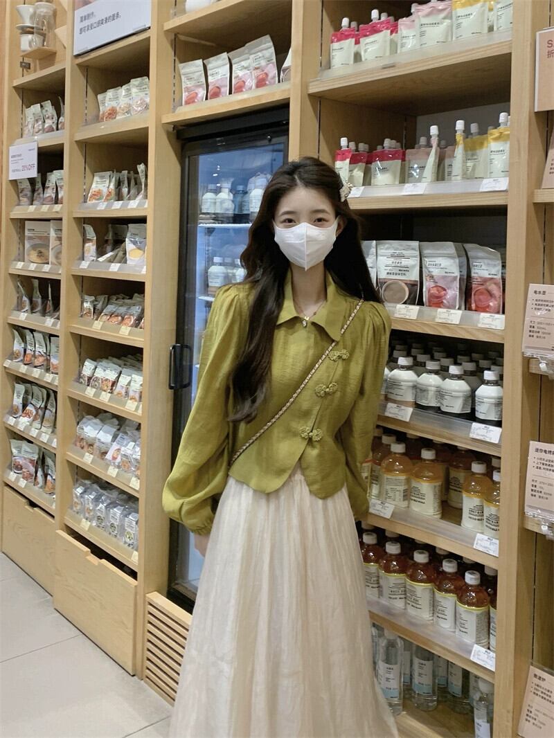 パフスリーブ長袖シャツレディースデザインセンスニッチ2023秋新作フレンチスタイル優しいバックルショートトップ ロング オータム 秋物 8571697327020040