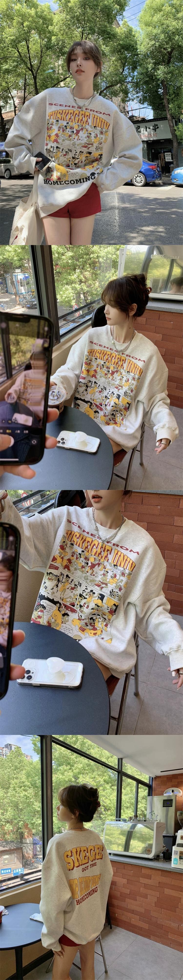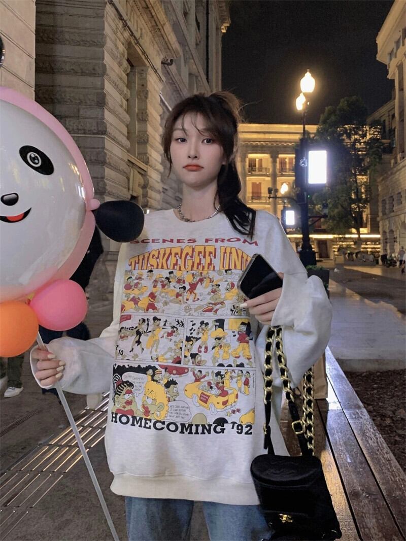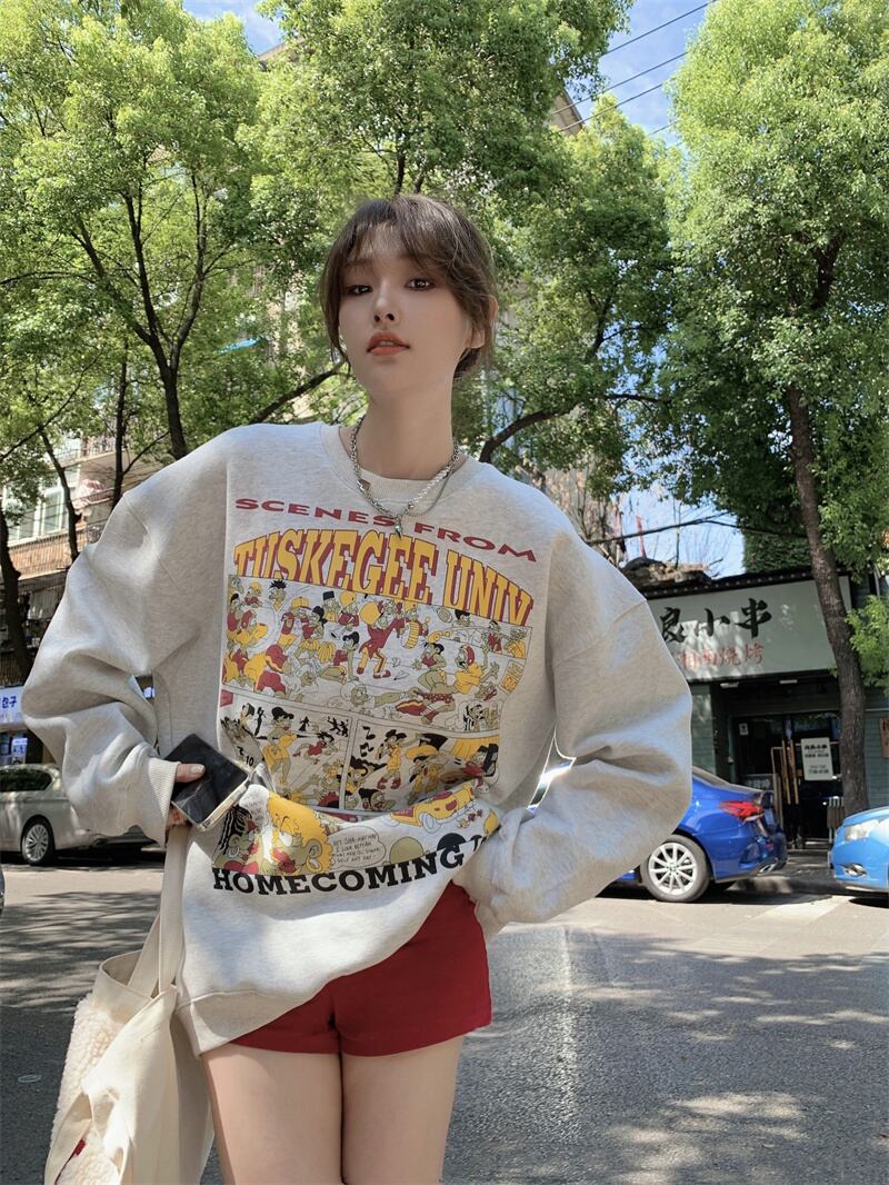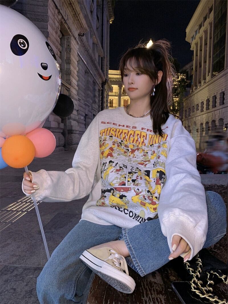 グレーセーター女性の小さなデザインセンスニッチ春 2023 新しいアメリカンレトロルーズ長袖トップ ロング スプリング 春物 8571625859558300