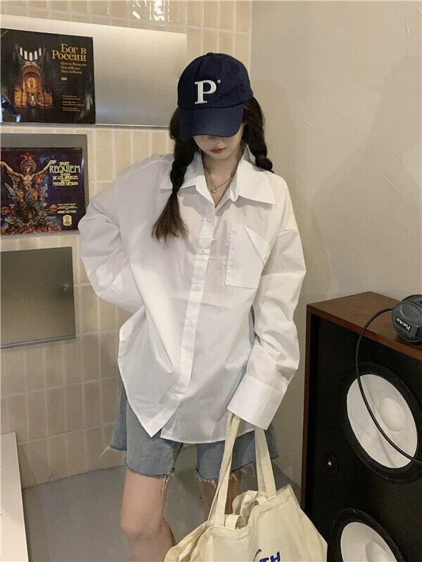 ブルーシャツの女性のデザインセンスニッチハイエンドシャツ2023秋の新しい香港スタイルのミドル丈長袖トップ ロング オータム 秋物 8571639427049603