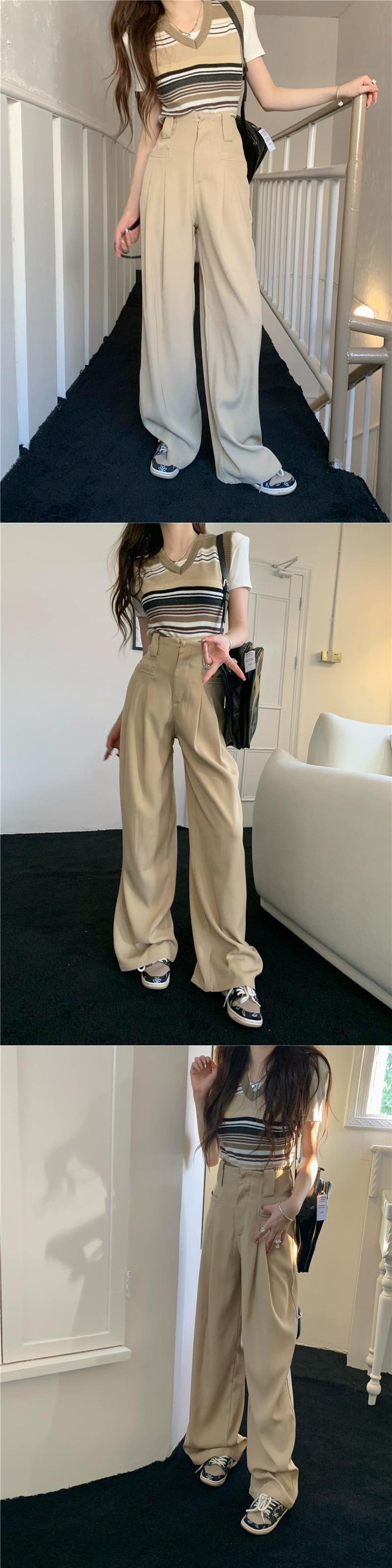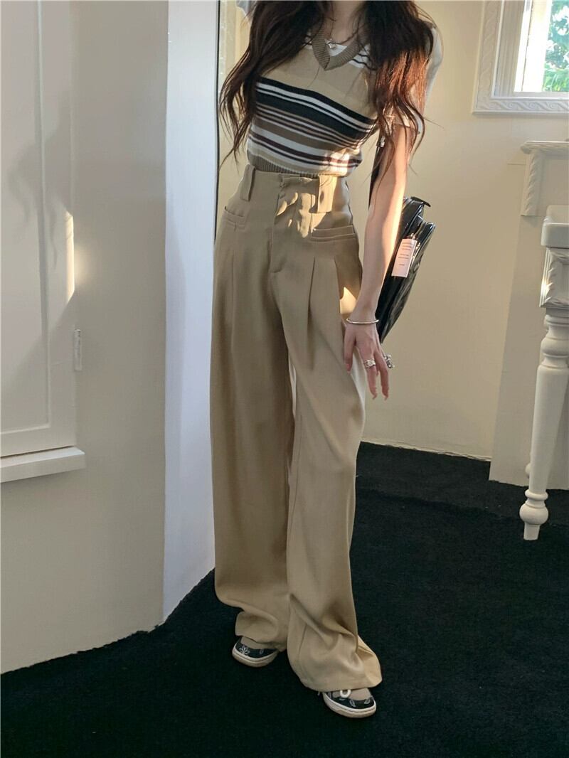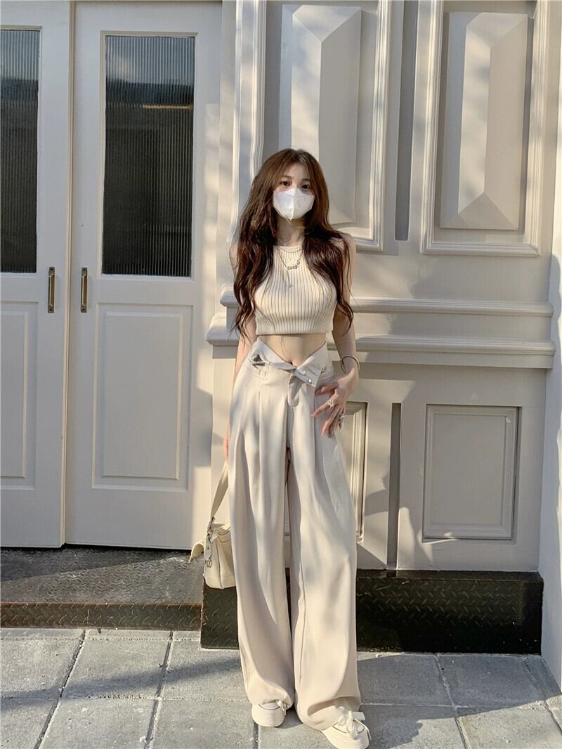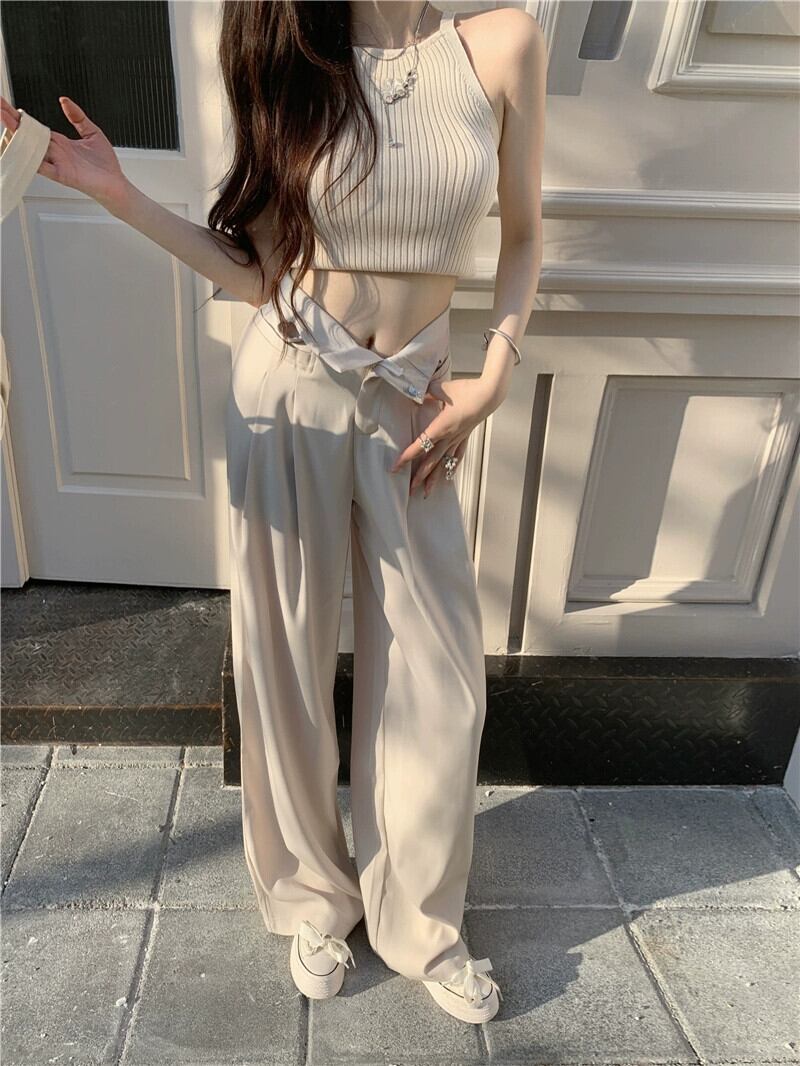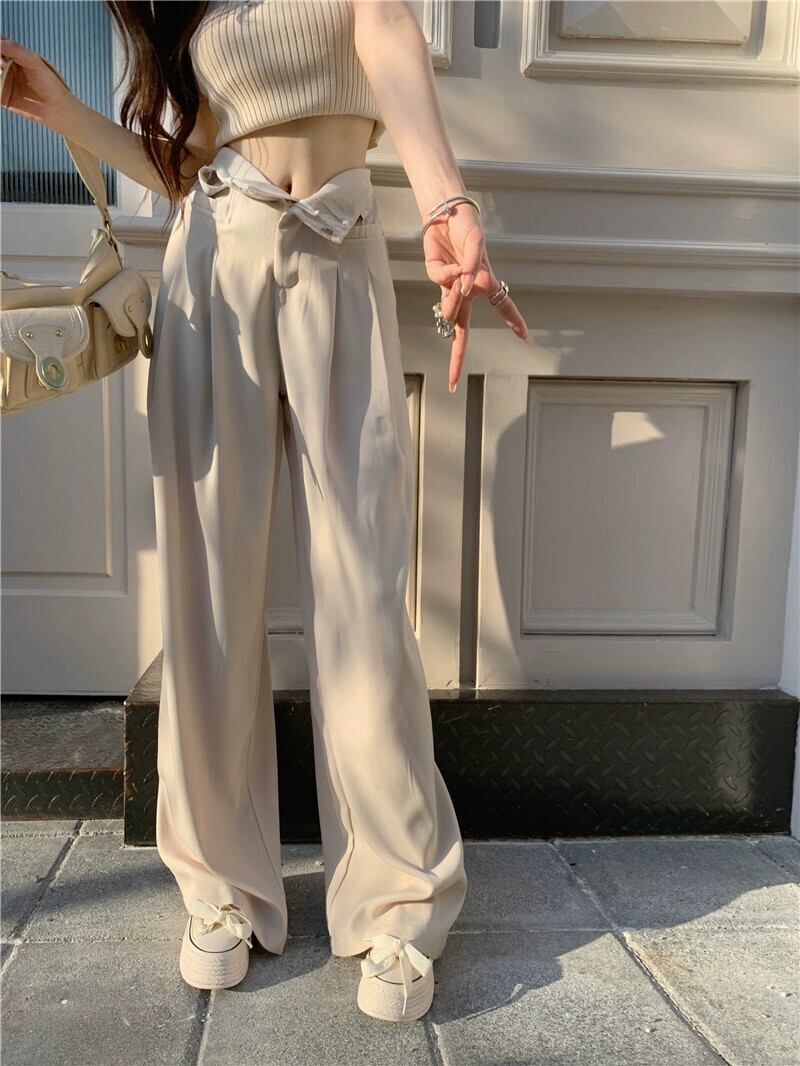 オフホワイト スーツパンツ レディース デザインセンス ニッチ 夏 薄肉 ハイウエスト スリム モップパンツ ルーズパンツ カジュアルパンツ ハイウェスト サマー 夏物 8571637419051495