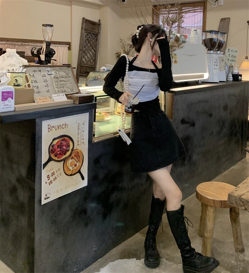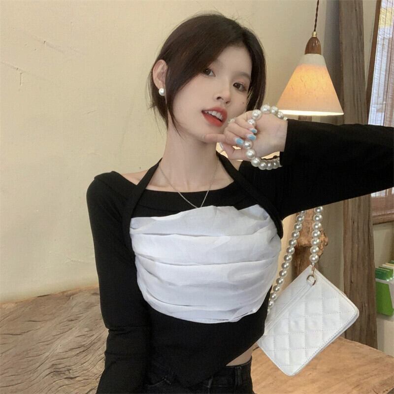 ホルターネック長袖Tシャツレディース初秋デザインセンスニッチフレンチユニークシック超美形スリムショートトップス ロング オータム 秋物 8571638240076159