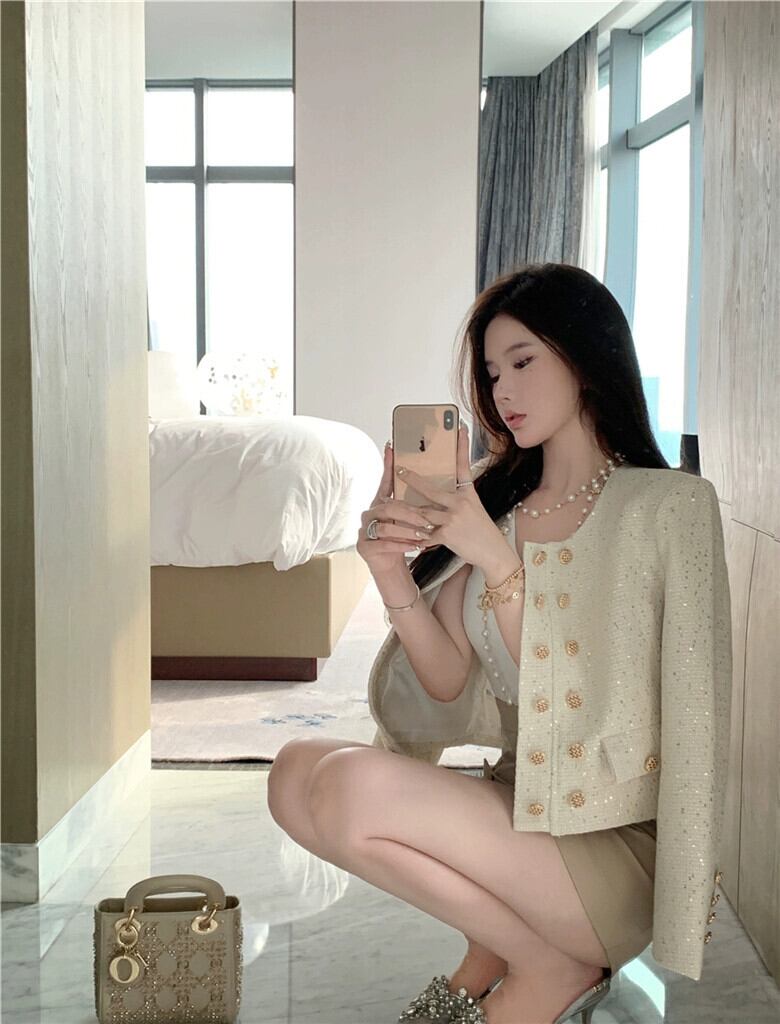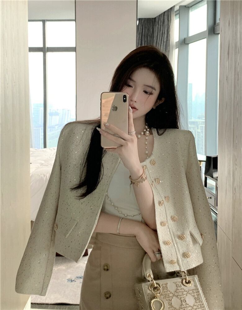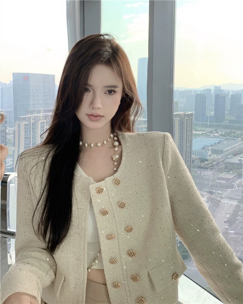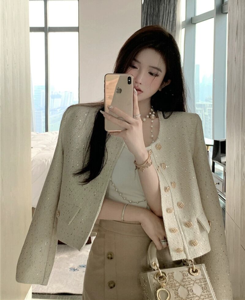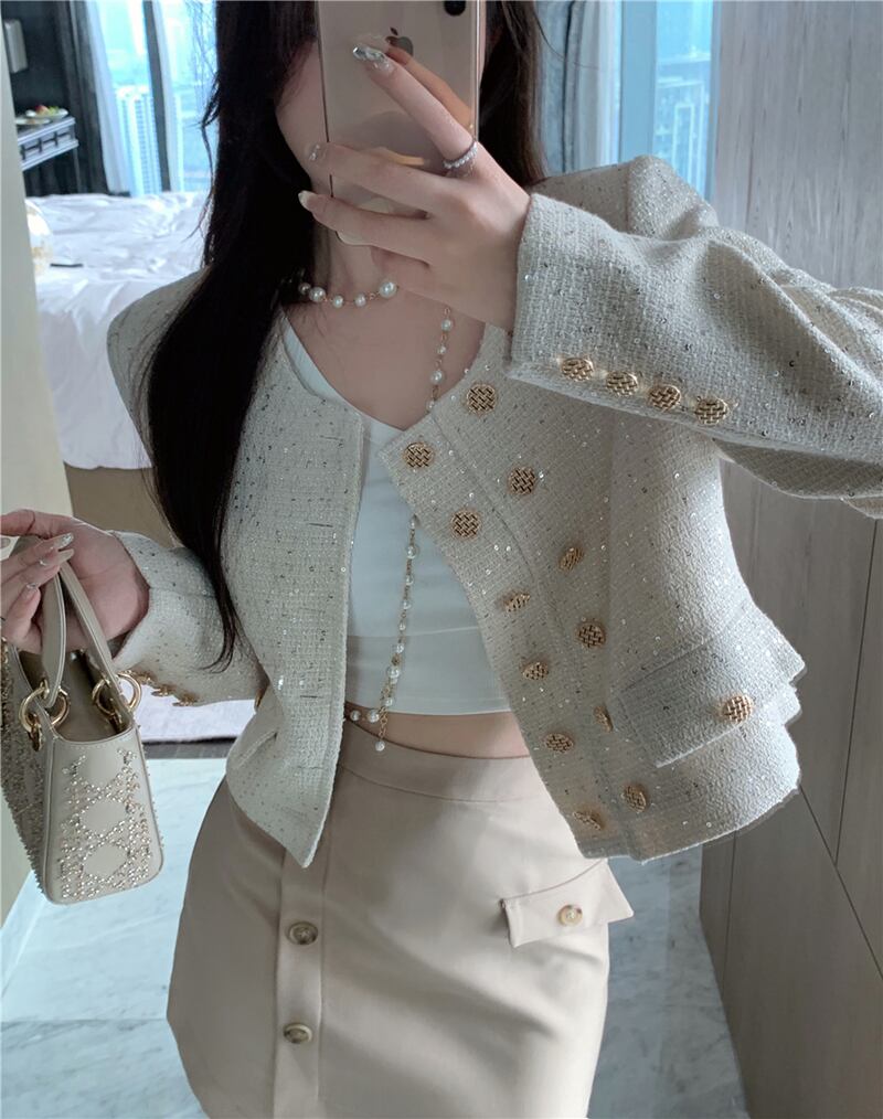 小さな香りの風ツイード ジャケット レディース 2023 秋の新作フレンチ スタイルのセレブのハイエンドの絶妙なショート トップ オータム 秋物 8571692739941796